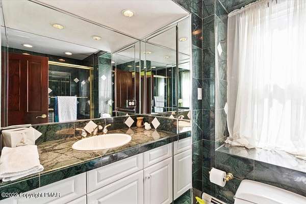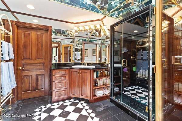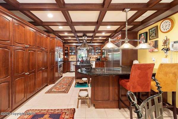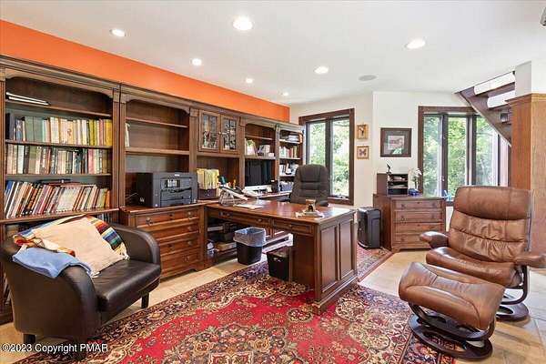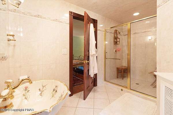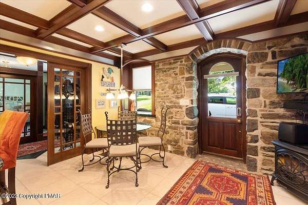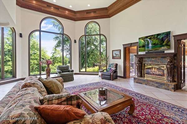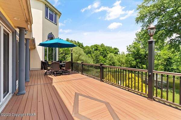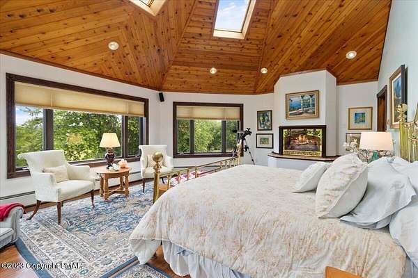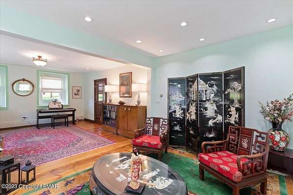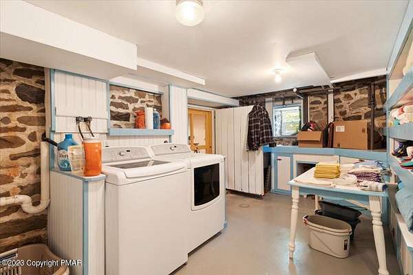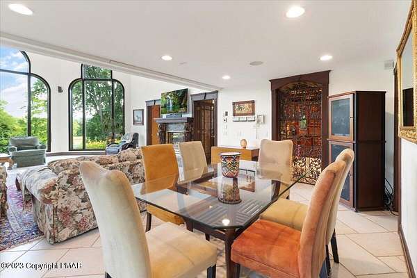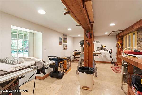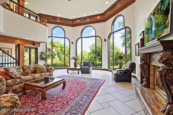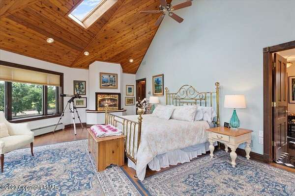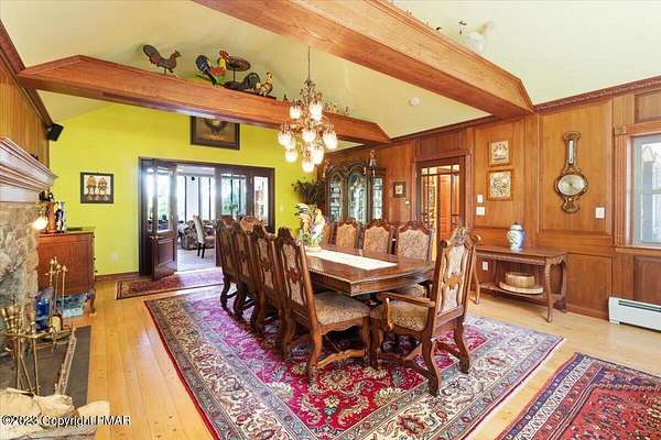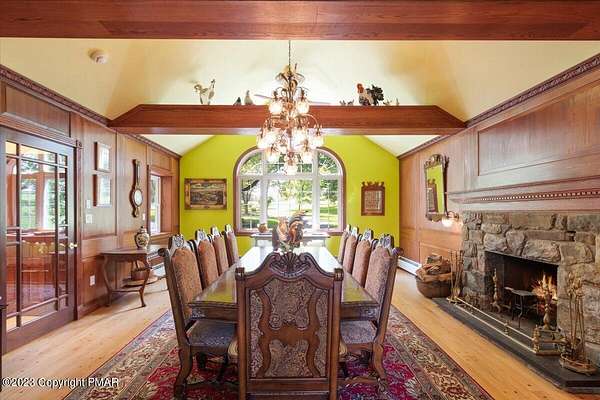 Charming Stone Farmhouse on 29.49 acres in Mt Bethel PA. Beautiful architecture melds a 1700 farmhouse, completely renovated to an addition four story high, hosting a fantastic living space. Panoramic views, from sun room, Cathedral ceilings and windowed Great Hall, plus wrap around porches, all give plenty of entertaining areas for guests, a versatile oasis! The ''Cook's'' kitchen, is generously equipped and beautifully laid out with top appliances and formal dining room. 2 primary suites, one with FP, 4 Bedrooms, 3 Full baths, Library and office, and lower level walk out suite with gym. Gorgeous lush landscaping, gardens and waterfalls, a pond with dock, forested stream and a sleek heated in-ground pool. The farm hosts two beautifully maintained stables with 7 stalls, 2 run in sheds, 5 fenced pastures with Nelson waterers, and shade trees, and a 250'x100' riding arena. Finally, a stately hewn wood raftered 2 story Bank Barn with tack room, and 3 car Garage, with artist's studio and office add beauty and farm pride, and one more treat- a Pole Barn offering enough space for 8 cars and farm/family equipment.
