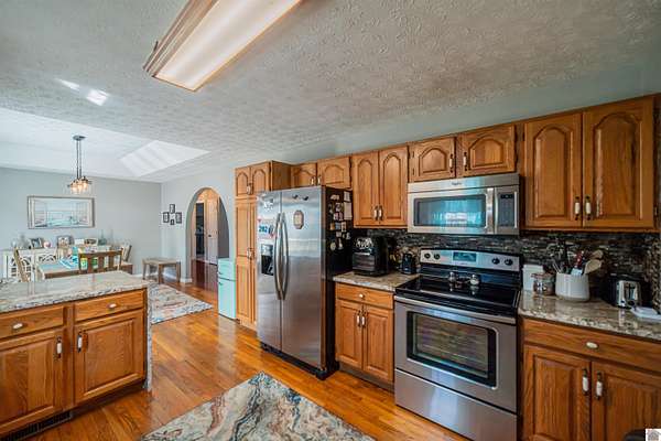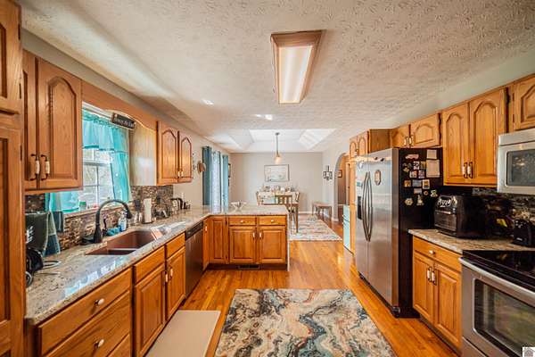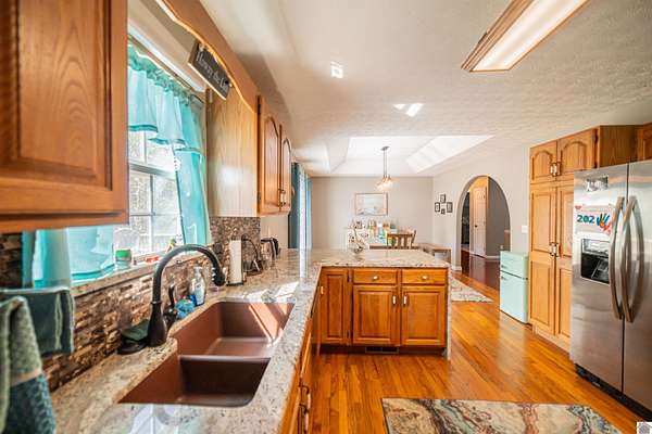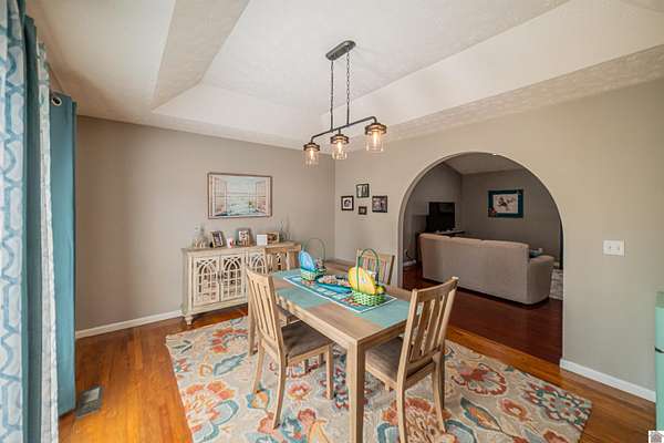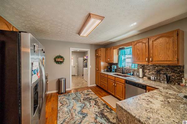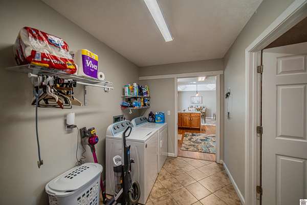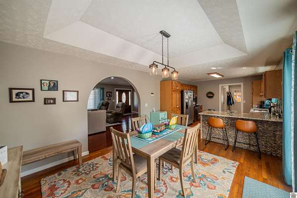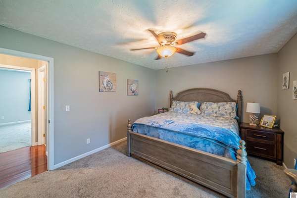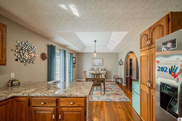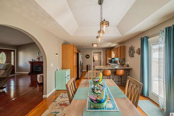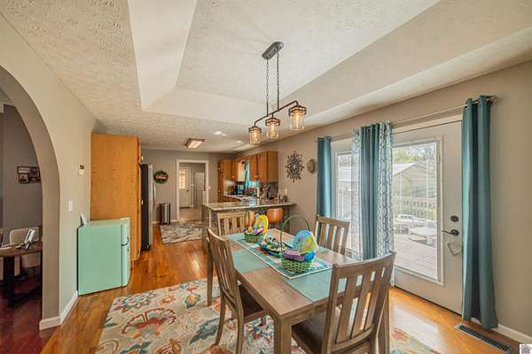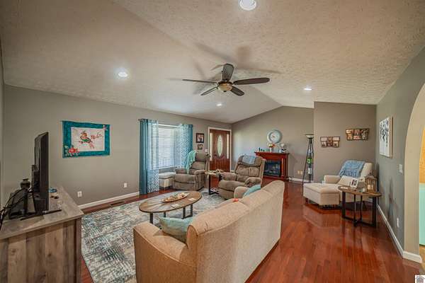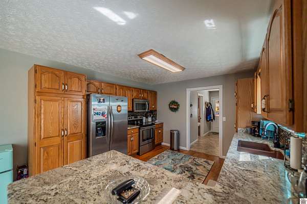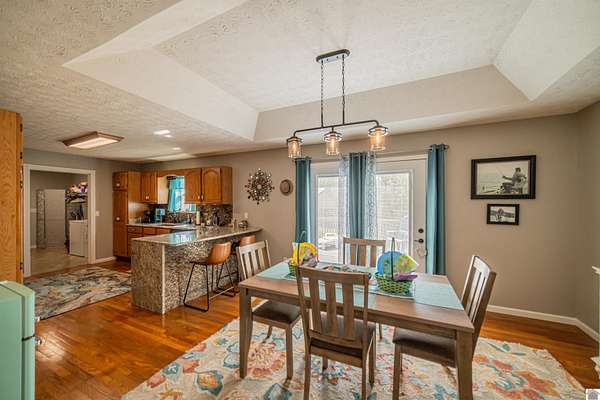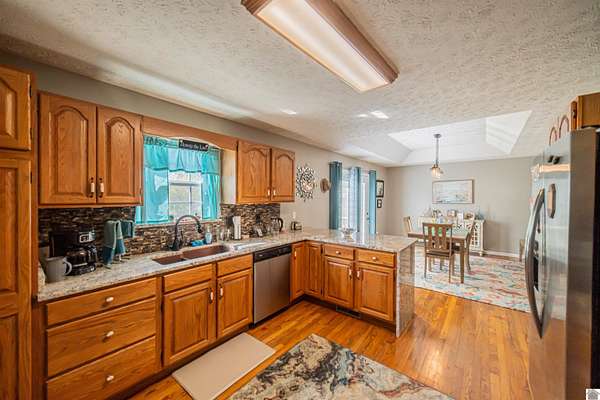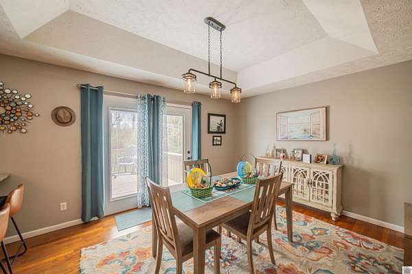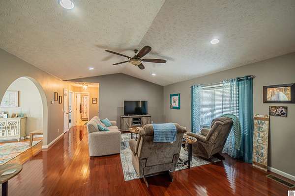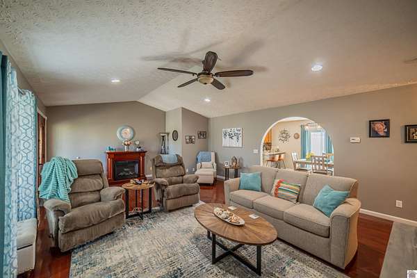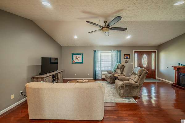 Looking for a lovely property in a beautiful country setting? This 3 bedroom, 2 bath home complete with attached 30x24 garage & outbuilding is situated on over 2 private acres in Ballard County! Beyond the paved circle drive, mature landscaping, & covered porch, enter the living area and enjoy vaulted ceilings & wood floors. The spacious family room gives way to a formal dining room complete with new French doors that open to the deck & a cozy fenced area. The split floor plan offers privacy, with 2 bedrooms & full bath on one end & the primary suite complete with new shower and bath vanity is located on the opposite end. The utility room is conveniently located just off the kitchen and primary suite & exits to the attached garage, which provides ample storage for all of your toys. Relax on the front porch or back deck as you enjoy views of trees and wildlife. This home has been thoughtfully designed and recent updates make it truly move-in-ready.