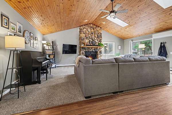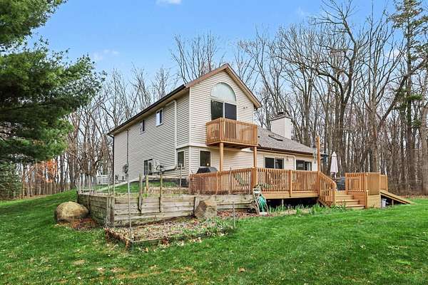 Your private escape awaits. This tastefully updated 3 bed, 2 full bath home sits well back off the road on 10 diverse acres and features a giant kitchen and island, living room with cathedral ceilings and a floor to ceiling stone, gas fireplace, loads of natural light throughout, newer roof and mechanicals, and endless views of the property, you won't be disappointed. No basement? No water problems. Storage? The 24x32 secondary garage has all the space you'll need. Located just south of Wabasis Lake, less than 15 minutes to either Rockford and Greenville, and 30 minutes to downtown GR, it's an easy retreat to your relaxing hideout. Hunt and fish your own property or hit the nearby public less than 15 minutes away. Work on your wedge game out to 100yds, enjoy fresh fruit from your raspberry patch, blueberries, wild blackberries, 15 apple trees, and 2 peach trees. Watch the deer and turkey that frequent the land, eagles, otters and beaver on the lake, take walks on the private trail through the back timber stand. The property is also equipped with 14 laying hens for all the fresh eggs you can eat. Too many eggs? Sell them at the road or to your family and friends to cover feed costs. The huge deck has great views of the lake and much of the property and faces SW for amazing sunsets over the water. The large, raised, and fenced garden has access off the deck as well. The eastern neighboring property is a Nature Preserve, owned and maintained by Calvin University. Opportunities like this don't come often; see it before it's gone. Seller is a licensed real estate agent in the state of Michigan.