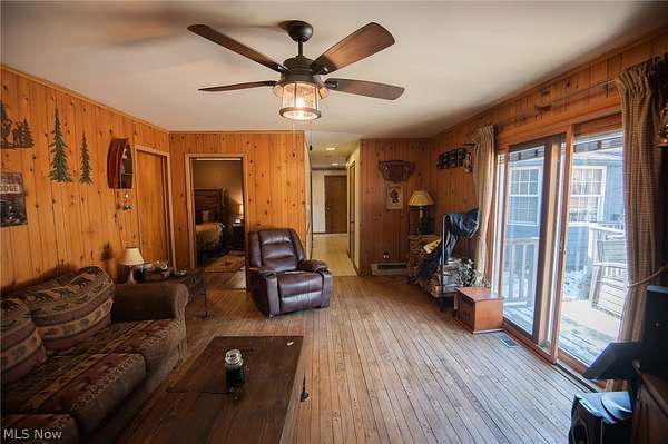 Welcome to your private retreat at 11180 Whitewood Dr on a dead-end street! Nestled on 5.24 wooded acres, this 4-bedroom, 3-bath home offers 2,608 finished square feet of space, versatility, and outdoor enjoyment. A true nature lover's dream, the property features an 18-foot-deep stocked pond with Large & Smallmouth Bass, Channel Catfish, Bluegill, Sunfish, and Perch, complete with an aerator and a dock built in 2024. The boat conveys, making it ready for immediate enjoyment. Inside, you'll find fresh carpet and a beautifully updated living room highlighted by a stunning stained wood accent wall. The flexible floor plan includes a mother-in-law suite with its own family room offering cozy cabin vibes - ideal for multi-generational living or extended guest stays. First-floor laundry added for convenience. The spacious composite deck provides the perfect setting for entertaining, cookouts, or simply relaxing while overlooking your wooded surroundings. Established flower beds await the seasonal gardener, and the invisible fence system will convey. Outdoor enthusiasts will also appreciate the private backstop for a firing range compliant with the Ohio Revised Code. Major updates include furnace, central air, and hot water tank (2023/2024), chimney relined for the wood-burning fireplace (2021), 2,000-gallon double leach field added (2023), well pump and pressure tank replaced (2025), and freshly painted wood siding (2024). The 1,624 sq ft basement plus crawl space offers abundant storage. A 2-car attached garage completes the home. Located just minutes from Punderson State Park and about 10 minutes to Chardon and Chesterland, this property offers the perfect balance of privacy and convenience. Own your piece of the Newbury countryside!