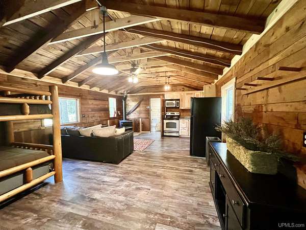 This beautifully renovated, 1 bedroom, 1 bathroom, camp on 20 private acres in Michigan's Upper Peninsula offers the perfect escape for outdoor enthusiasts. Located near Pole Creek Lake and Round Lake, the property provides easy access to fishing, kayaking, and nearby ATV trails. It's also ideal for hunting, hiking, and year-round recreation. Adjacent to state land for even more room to roam--this is a turn-key Northwoods getaway. No outhouse needed! LANDSCAPING done and grass is growing! Taken down to the studs and fully renovated, the camp features a new metal roof, modern upgrades including fiber optic internet availability, a brand new well and septic system, and a relaxing sauna. Enjoy the outdoors from the new 10x20 deck, surrounded by a scenic mix of pine and hardwood forest. This is a new address due to a parcel split. Using 11281 Co Rd 440 will get you to the camp.