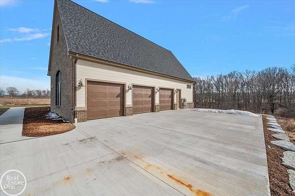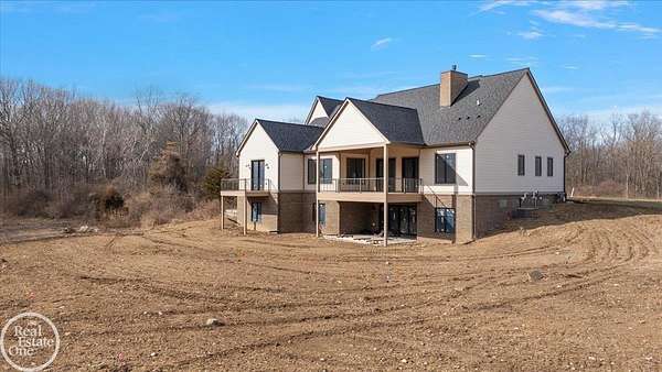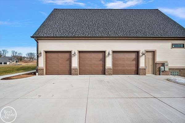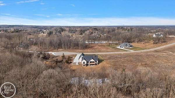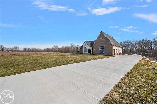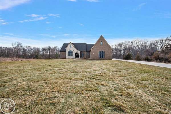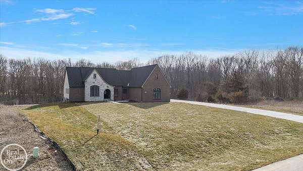Stunning brand-new designer showcase great room ranch with walk-out lower level on 2.59-acre private lot. Home has been finished with all high-end finishes throughout that the discriminating Buyer will truly appreciate. Beautiful wide-plank hardwood flooring throughout the entire 1st floor; Custom LaFata cabinetry with quartz countertops; Chef's gourmet island kitchen with built-in commercial grade GE Monogram appliances; Awesome 12' x11' walk-in pantry/workstation. White oak custom carpentry and trim work; Balcony off primary suite & covered lanai feature Trex decking; Spacious primary suite with luxury bath & huge walk-in closet; Great split ranch floor plan with primary suite on one side of house along with 2 other bedrooms each with private bathrooms on the other side of home. Extra deep walkout basement; Oversized 3.5-car garage with insulated doors; 2.59 acre lot includes inground sprinklers in front & rear yard; Sod installed in front yard. Rear lot line goes into woods past East Pond Creek. Home is finished and ready for immediate occupancy.