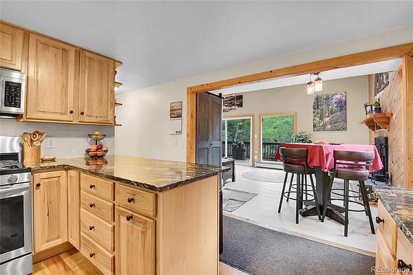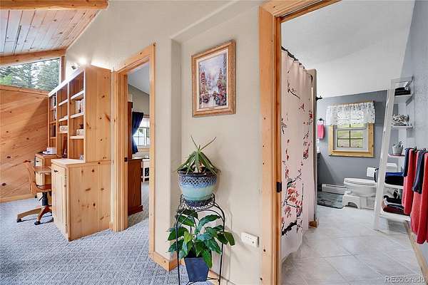 Story book setting with a creek meandering through the trees along the front, the home is nestled back in a beautiful wooded area that is truly a quiet, park like oasis. The amazing studio opposite the front door above the garage could be an ideal office or guest suite includes a full bathroom and wet bar. The vaulted living room has skylights and a stunning wall of windows giving you endless natural light and immersive views. This main level is ideal for entertaining or for day-to-day living with a wraparound deck. Look back off the deck area separating the loft from the home you will see a spring fed water feature in the fenced area that doubles as a canine water fountain! There is additional storage under the deck on the east side of the home. The heated three car garage has cabinetry, a work bench, tool cabinet, and floor drains, and plenty of power. High Speed Fiber should be available soon. The location is only minutes to Conifer, and provides safe easy access getting on and off the highway in both directions. Green thumbs are welcome, the well has excellent production and allows for some outside irrigation, including the watering of domestic animals. Whether you're walking along the creek, on the deck basking in the warmth of the sun while entertaining friends, watching the wildlife, sipping a cold one while plotting your next adventure, or reading a good book while listening to the creek and the rain, you will treasure your time spent at home! Minutes to Hwy 285, two stop-signs to DIA, but you will not want to leave home. Minutes to gold medal fishing on the North Fork of the South Platte River. Plenty of hiking, biking, 4 wheeling, and Beaver Ranch top rated disc golf nearby. Friend(s) to be entertained, good book(s), adventure(s), cold one(s), are not included and buyer is advised to obtain their own source for these items. Warmth of the sun, rain, and views are weather dependent, and may be subject to limited availability.