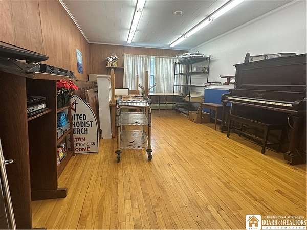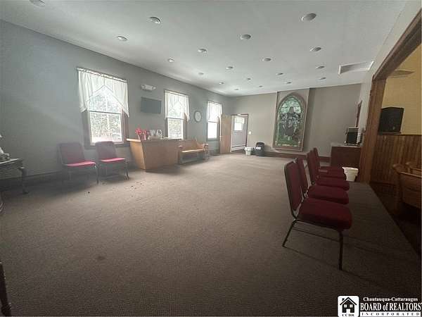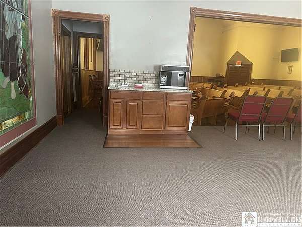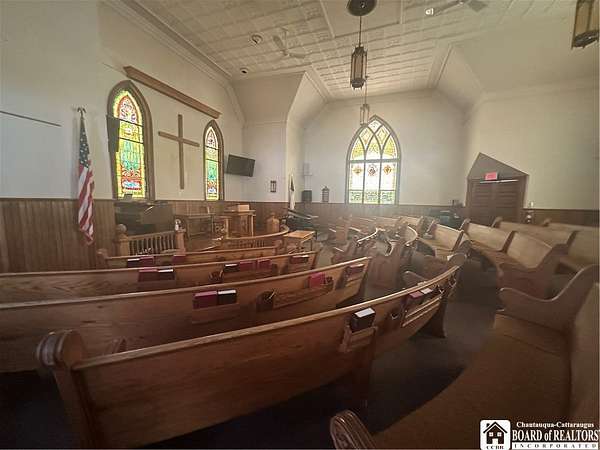 This stunning 9,816 sq ft church, located in Steuben County, offers a rare opportunity for a variety of uses. The property spans two floors, with an elevator providing easy access to both levels. The church features impressive cathedral ceilings and beautiful stained glass windows, creating a serene and inspiring atmosphere. The basement is equipped with a full commercial kitchen, perfect for large gatherings, events, or community meals. The property also includes multiple office and classroom spaces, offering flexibility for administration, meetings, or educational purposes. With its gorgeous finish work, well-maintained interior, and spacious layout, this church is ready for immediate use or conversion to suit your needs. This property has immense potential, making it a must-see for anyone seeking a unique, versatile experience.