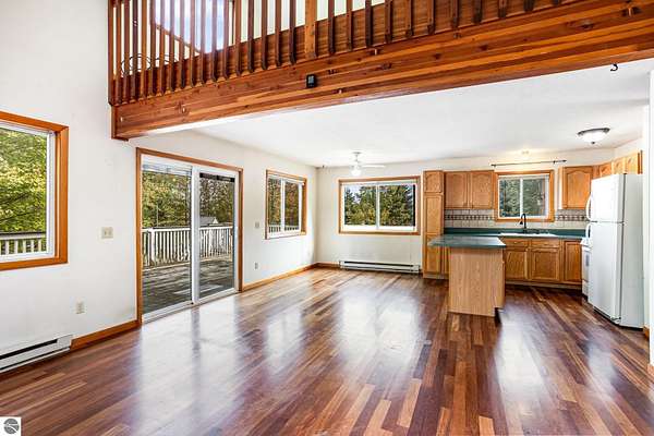 Welcome to this charming 3-bedroom, 2-bath home nestled on nearly 3 acres in the beautiful Lake Isabella community, a private all-sports lake known for great fishing, boating, and relaxation. The main level offers a comfortable layout featuring two bedrooms, a full bath, a spacious kitchen and dining area, and a cozy living room perfect for gathering. Upstairs, you'll find a loft-style bedroom suite with its own bathroom an inviting retreat overlooking the main floor. The full basement provides additional living space, a bonus room with a closet, and a utility area for extra storage and convenience. Outside, the property offers plenty of room to enjoy peaceful country living with all of Lake Isabella's amenities, including community parks, golf, and lake access. With just a touch of TLC and fresh paint, this home could easily become your perfect year-round residence or weekend getaway.