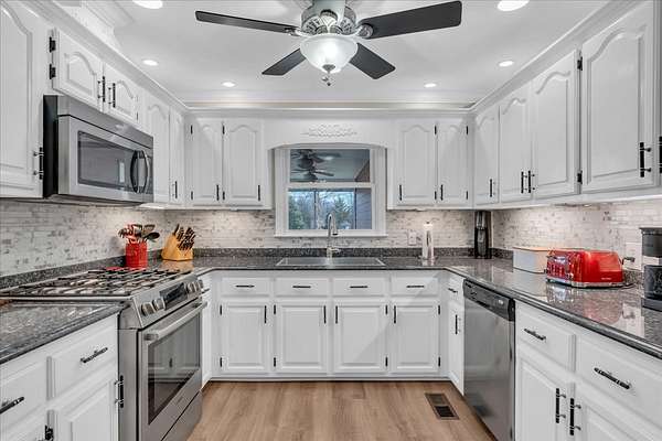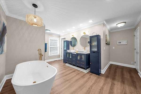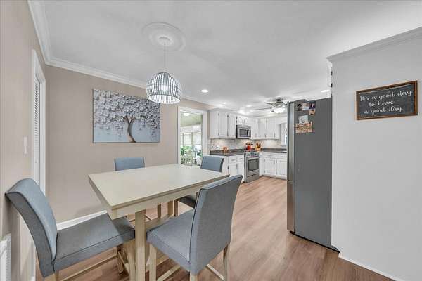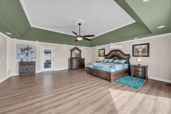 The eat-in kitchen offers ample space for gatherings and everyday meals alike. The extra-large primary suite is a true retreat, complete with a private screened porch, oversized bathroom featuring a soaking tub, separate shower, and an impressive walk-in closet. Additional bedrooms provide flexibility for family, guests, or hobbies.