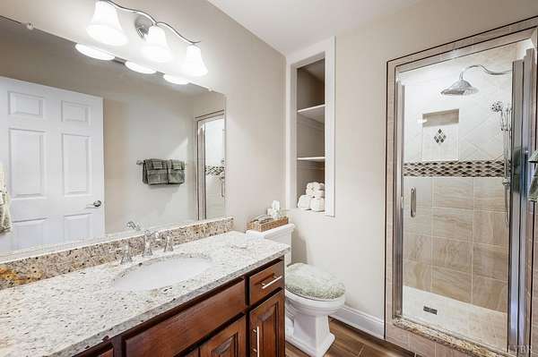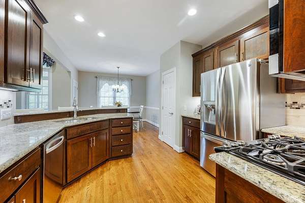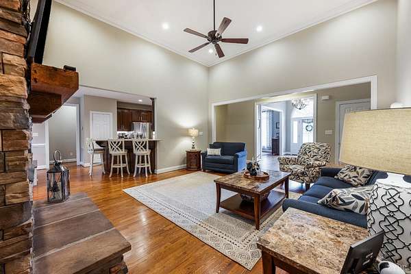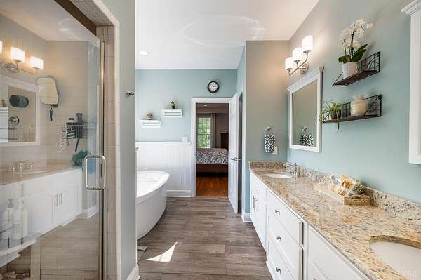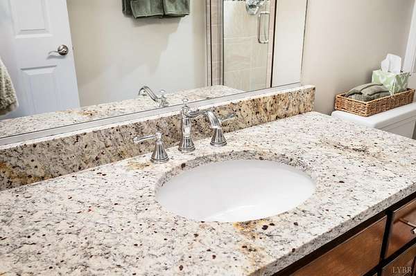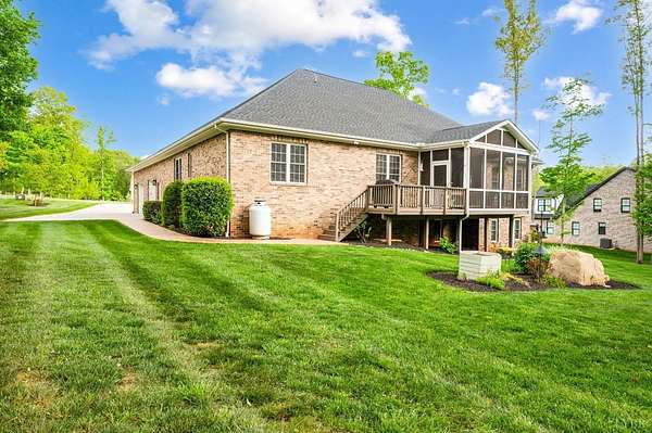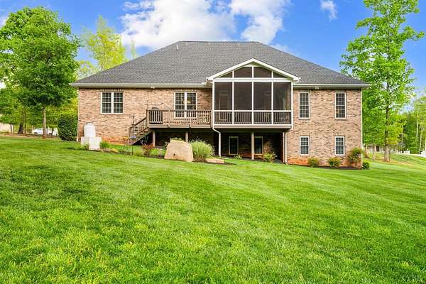 Classy brick home, 1.63 cul-de-sac lot, a tranquil setting in a fabulous Bedford County neighborhood (JF schools). Lovely curb appeal, oversized garage, incredible, prime flat lot that backs to wooded, mature trees offers a quiet lifestyle. Step inside to a very desireable open floor plan with vaulted great room, beautiful fireplace, blending seamlessly to the lovely kitchen. The kitchen with stainless appliances, gas range, pantry, granite counters, perfect for preparing meals for guests. Intimate dinner parties in the dining room, or take the party outside and grill on the deck, then relax on the screened porch until the day winds down while enjoying the soft peaceful sounds of nature. Main level master/primary (private entrance to porch) will become your favorite retreat after a long day. Pampering bath, tub, tile shower, perfect retreat. Three other bedrooms on main level. Second level boasts private guest quarters with full bath, walk-in attic. FULL unfinished basement.