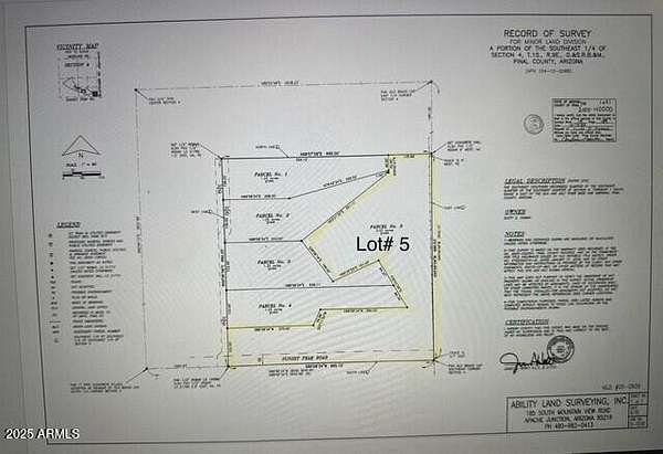 What a RARE find! Welcome to one of Gold Canyon's most elevated and breathtaking 5-acre parcels in a gated community. This extraordinary hilltop home-site offers unmatched panoramic views with surrounding mountain vistas, twinkling city lights, and gorgeous sunsets from every angle. Enjoy ultimate privacy, with the property bordering untouched state land and set at the end of a private asphalt road. Best views in Gold Canyon! All improvements are in place & ready for your custom build! Whether you're dreaming of a luxury estate or a serene retreat, this property offers endless possibilities in a setting that truly goes above and beyond. Ask listing agent about the CAD renderings completed by the owner. View the video tours of the endless possibility's for the land development.