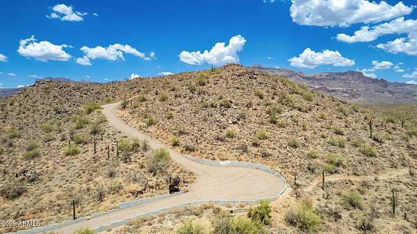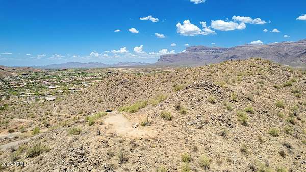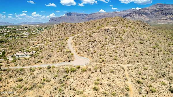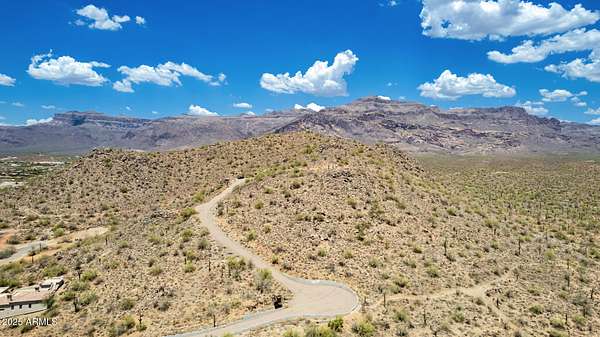What a RARE find! Welcome to one of Gold Canyon's most elevated and breathtaking 5-acre parcels in a gated community. This extraordinary hilltop home-site offers unmatched panoramic views with surrounding mountain vistas, twinkling city lights, and gorgeous sunsets from every angle. Enjoy ultimate privacy, with the property bordering untouched state land and set at the end of a private asphalt road. Best views in Gold Canyon! All improvements are in place & ready for your custom build! Whether you're dreaming of a luxury estate or a serene retreat, this property offers endless possibilities in a setting that truly goes above and beyond. Ask listing agent about the CAD renderings completed by the owner. View the video tours of the endless possibility's for the land development. Just WOW!