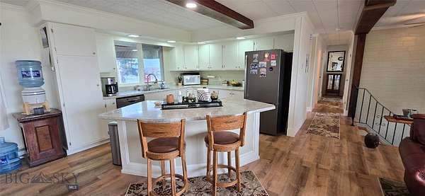 Experience the perfect blend of modern living and rural tranquility with this beautifully remodeled 3-bedroom, 2-bath home, offering 2,382 sq. ft. of living space on three city parcels totaling approximately 2.3 acres. Nestled in the friendly community of Winifred, this home is ideally located just 40 miles from Lewistown and less than 20 miles from the Upper Missouri River Breaks National Monument. This area provides endless opportunities for outdoor enthusiasts, with world-class hunting, fishing, hiking, and biking all within reach. Winifred also boasts a recently upgraded K-12 school, modern amenities including a hotel, restaurant, coffee shop, grocery store, post office, and a community center. The town is currently undergoing a civil improvement project with all new curbing, sidewalks, and paved roads being completed throughout. Spacious and designed for both comfort and entertaining, this split-level home connects to city water but also features its own private well, perfect for irrigation and gardening. The property includes a side parcel and a large backyard, offering ample space for a workshop, RV hookups, or even a guest dwelling. Recently remodeled, the home features open living, spaced out over two levels with new finishes throughout. The original homestead buildings have been reconfigured and are now being used as bunkhouse/guest quarters, single car garage and heated shop space w/cold storage at the back. This property is your gateway to small-town living with unmatched access to Montana's outdoors!