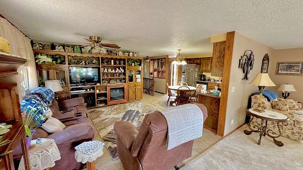 Spacious Home on 6.02 Acres with Commercial Potential - Just North of Bowman, ND Located on over 6 picturesque acres just off Highway 85, this well-maintained property offers both residential comfort and commercial opportunity. The home is built on a solid poured concrete basement and features durable steel siding for lasting peace of mind. The oversized, insulated 2-stall garage includes a floor drain-perfect for year-round use. The main floor boasts a welcoming layout with a bright living room, formal dining area, and a spacious eat-in kitchen. There are two comfortable bedrooms, a full bathroom, and a private master suite complete with its own full bathroom and walk-in closet. Enjoy outdoor living and entertaining on the large covered front deck, perfect for gatherings or relaxing evenings. Downstairs, the finished basement features two non-conforming bedrooms, a 3/4 bath, a large recreational room with a cozy wood-burning stove/fireplace, and a dry bar-ideal for entertaining or relaxing. Additional features include: Central A/C and natural gas-forced heat Southwest Water plus a private well on the property Beautiful mature trees, flower beds, and sidewalks throughout A separate shop situated on 2 acres of commercially zoned land-offering incredible potential for business, storage, or hobby use - Shop: 60 ft. x 80 ft.; Insulated, Heated, Southwest Water With easy highway access and a private, peaceful setting, this property combines rural charm with unique flexibility for future use. PROPERTY OVERVIEW Lot Size: 6.02 Acres Bath: 2.75 Beds: 5 Sq Ft.: 2,880 Year Built: 1970 Taxes: TBD (2024) Legal: Stiller Subdivision, Lots 8-10, Tract in NW 1/4 Section 6-131-101 Exterior: Stainless Steel Roof: Asphalt Heating & Air: Natural Gas Forced/Central Air Conditioning Foundation: Poured Cement Basement: Finished Utilities: MDU - Natural Gas; Southwest Water (Water); City of Bowman - Garbage; Private Septic Website ID: 128020