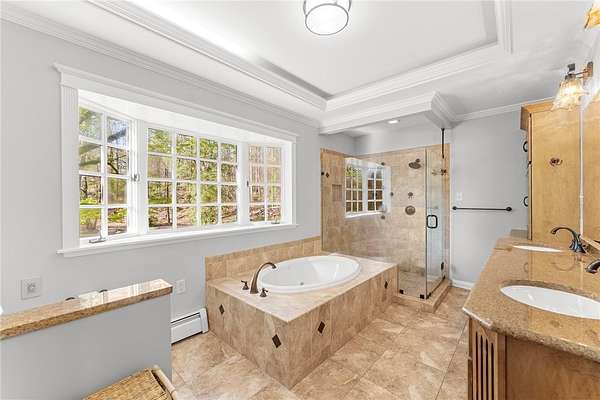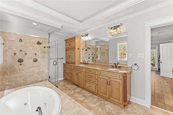 - Bath In Primary Bedroom, Bookcases, Built In Features, Ceiling Fans, Central Vacuum, Dual Sinks, Fireplace, Jack And Jill Bath, Jetted Tub, Main Level Primary, Separate Shower, Walk In Closets, Walk In Shower, Window Treatments