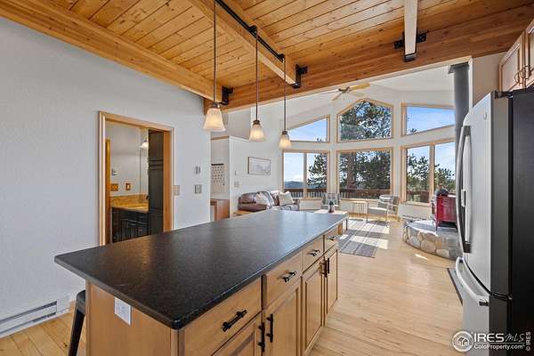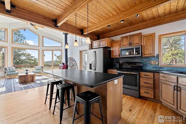Experience the perfect balance of modern comfort and mountain serenity in this beautifully updated Red Feather Lakes retreat. Set on over five pristine acres at the end of a quiet cul-de-sac, this property offers sweeping panoramic views, adjoining private open space, dramatic rock outcroppings, and a stunning mix of mature pine, aspen, and fir trees. Evenings are best spent gathered around the outdoor firepit, taking in unforgettable Colorado sunsets and the peace of true mountain living.The property is well-equipped with RV parking, a heated detached two-car garage, large storage shed, dog run, private well, and membership in the Crystal Lakes Water Association. Recent exterior updates include a newer roof and siding, providing both peace of mind and long-term durability. Inside, thoughtful upgrades blend seamlessly with the natural surroundings. Highlights include leathered granite countertops with a modern backsplash, all-new interior paint, new Anderson sliding door, updated flooring, a new hot water heater, and a remodeled basement bathroom. Natural wood floors, floor-to-ceiling windows in the living room, a main-level primary bedroom, and a wood-burning stove create a warm and inviting atmosphere throughout the home. Located in a sought-after mountain community, owners enjoy access to the exceptional amenities of Red Feather Lakes and Crystal Lakes, including lakes, fishing, hiking and biking trails, golf, and year-round outdoor recreation. This is mountain living at its finest-private, scenic, and perfectly positioned to embrace the Colorado lifestyle.