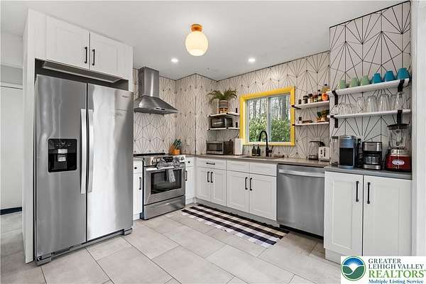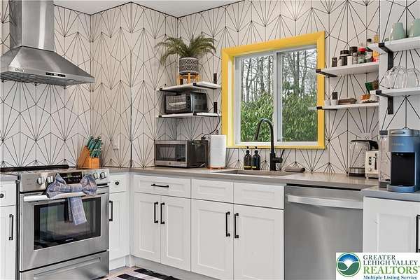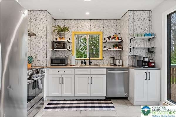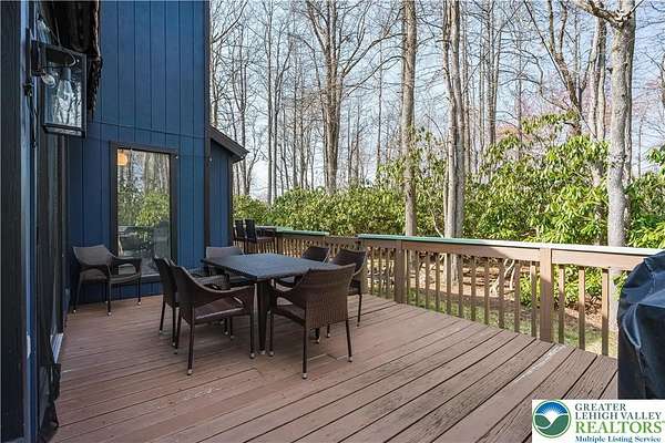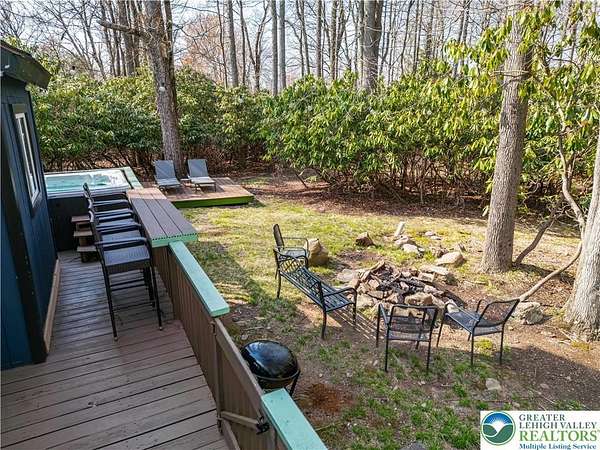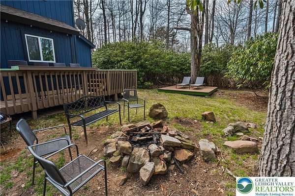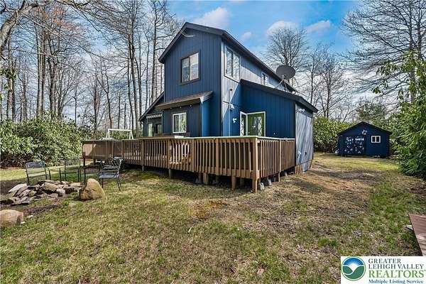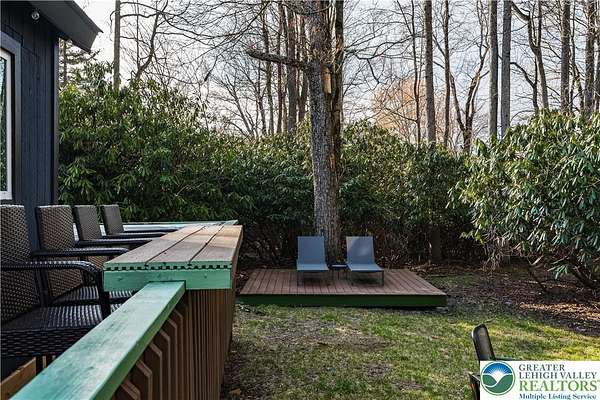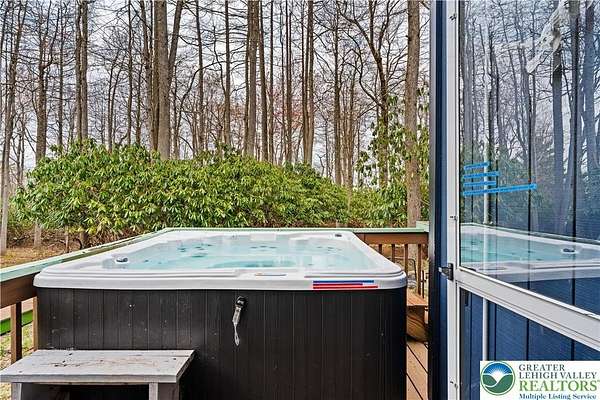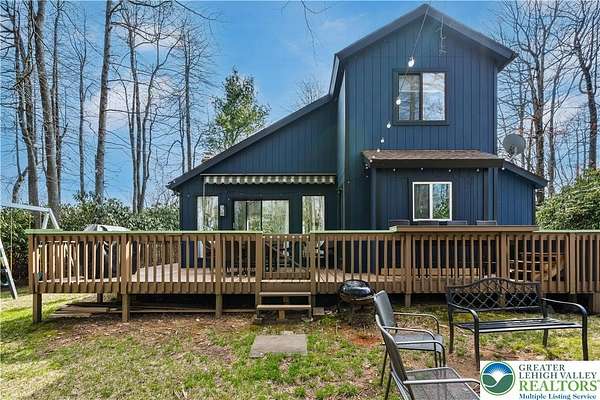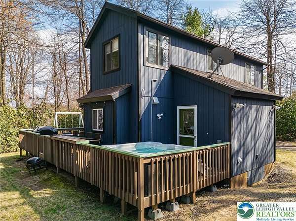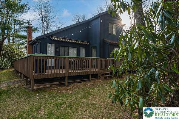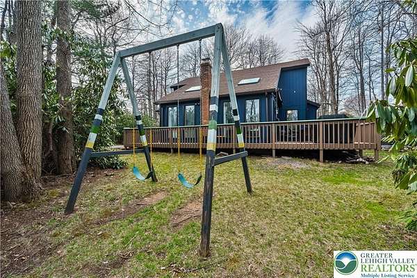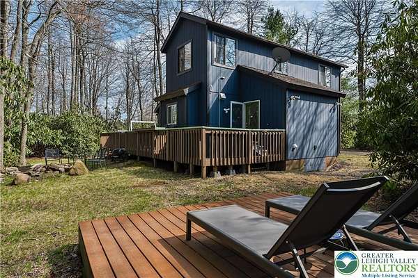 Set on over 3 acres in Emerald Lakes, this incredible property offers a private, wooded setting with established walking paths that wind throughout the grounds. The outdoor space is designed for both everyday use and entertaining, featuring a wraparound deck, hot tub, fire pit, swing set, and a fully equipped playhouse with luxury vinyl plank floor, electricity, and baseboard heat. Inside, the home has been extensively updated with a clean, modern feel, creating a move-in ready experience with minimal maintenance. The eat-in kitchen features stainless steel appliances, recessed lighting, tile backsplash, Whirlpool refrigerator, range hood, and built-in shelves. Short term rentals allowed, offers flexibility for full-time living, a second home, or investment use. Emerald Lakes offers their homeowners countless private amenities and is a unique way to experience the best the Poconos have to offer like skiing, festivals, waterparks, shopping and so much more. Additional lots & models available. Schedule today!