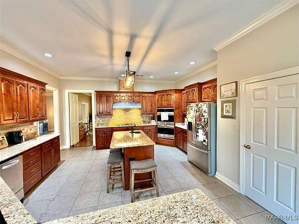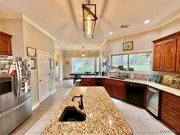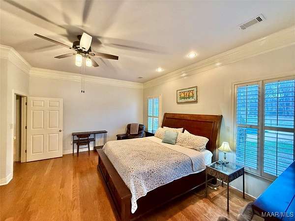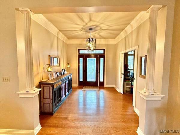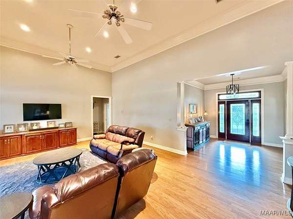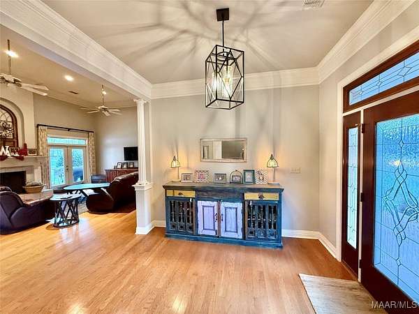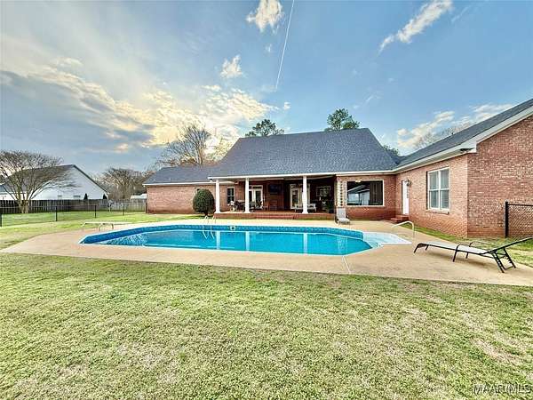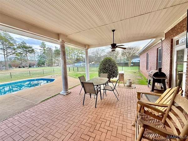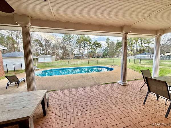 Beautiful 4 bedroom, 3 bathroom home offering space, comfort, and exceptional outdoor living. This split floor plan features a large family room and a spacious formal dining room perfect for entertaining. The designer chef's kitchen includes double ovens, a large gas cooktop, center island, and abundant cabinet and counter space for storage and functionality. Wood flooring and plantation shutters flow throughout the home, adding warmth and timeless style. The two-car garage includes a dedicated office area, ideal for working from home or additional flex space. Situated on a large lot with a circular driveway providing ample parking, the home boasts a welcoming front porch and a covered rear porch with an outdoor kitchen area - perfect for entertaining year-round. The backyard oasis features an inground saltwater pool with a newer liner, a fully fenced yard, and a large shop with two roll-up doors for storage, hobbies, or equipment. Don't miss this incredible opportunity to own a home that offers both elegance and functionality!