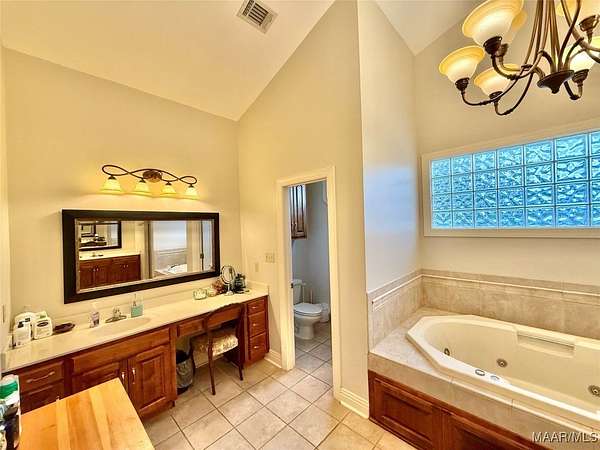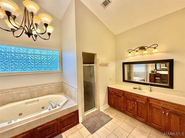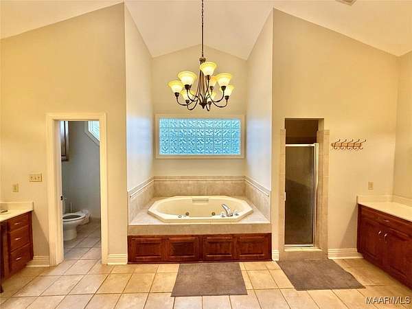 - Breakfast Bar, Double Vanity, High Ceilings, Jetted Tub, Kitchen Island, Linen Closet, Pull Down Attic Stairs, Separate Shower, Window Treatments