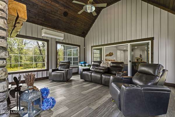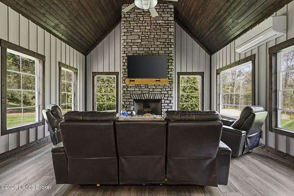 Lake Life Living in a Private Gated Community Experience the perfect blend of privacy, comfort, and upscale living in this newly listed custom-built home, set on 6.79 acres within the exclusive gated community of Poplar Ridge HOA-Dog Creek. This beautifully designed 4-bedroom, 2.5-bath residence features a thoughtfully crafted floor plan ideal for both everyday living and entertaining. The first-floor primary suite offers convenience and privacy, while three additional bedrooms and a spacious loft upstairs overlook the main living area, creating an open and inviting atmosphere. A bright Florida sunroom with a cozy fireplace provides the perfect retreat for year-round enjoyment. Step outside to a truly exceptional outdoor living space. The large, covered patio is equipped for entertainment and enhanced with Starlink satellite service, while the expansive paver patio includes a grill area and an outdoor fireplace-ideal for relaxing evenings under the stars. A private basketball court adds even more opportunity for recreation. The professionally landscaped grounds are fully irrigated, offering both beauty and ease of maintenance. A spacious garage accommodates a boat, wave runners, and a golf cart-perfect for embracing the lake lifestyle. Enjoy convenient access to the water via a partially paved path or a quick golf cart ride to your private Dock #4. The included $27,500 dock and boat lift make lake days effortless. Offered fully furnished and gently used by the owners during summer months only, this home is truly move-in ready-just bring your bags and start enjoying lake life.