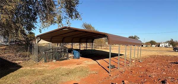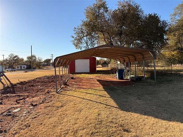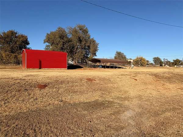 Est $301/moLarge corner lot in Foss, OK. There is a carport and new red barn type building.