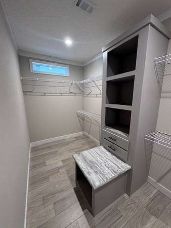 - Blinds, Ceiling Fan, Deck, Double Paned Windows, Drapes, Pantry, Walk-In Closet