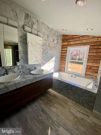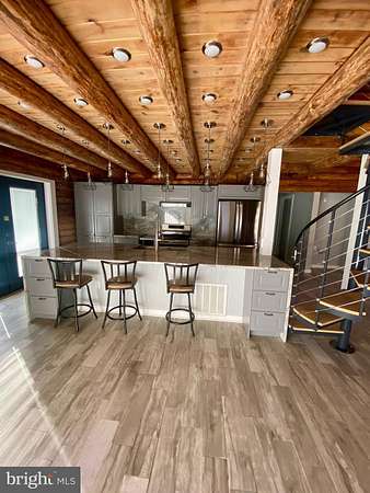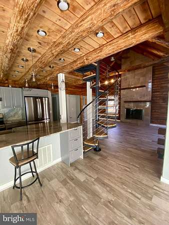 Welcome to this beautifully renovated luxury cabin, privately set on 3 serene acres along a quiet dead-end road in desirable Fredericksburg (22406). Offering the perfect balance of rustic charm and modern comfort, this 4-bedroom, 3-bath residence provides an ideal full-time home with the added benefit of a separate in-law suite or rentable apartment, all just minutes from I-95, shopping, and downtown Fredericksburg. The interior features heated porcelain flooring throughout a thoughtfully designed open floor plan. The gourmet kitchen is appointed with granite countertops, a waterfall island, granite backsplash, slow-close cabinetry, farmhouse sink, stainless steel appliances, built-in microwave, and induction oven-perfect for both everyday living and entertaining. The inviting living area is centered around a wood-burning fireplace and enhanced by a unique swinging hammock, creating a warm and relaxing atmosphere. A spiral staircase leads to a spacious loft overlooking the main living area, offering flexible use as a sitting area, home office, or additional bedroom. The main level also includes a dedicated laundry room, office space, and two additional bedrooms and bathrooms, all with heated floors for added comfort. The primary suite features floor-to-ceiling windows with tranquil wooded views, a generous walk-in closet with custom built-ins, and a spa-inspired bath complete with dual vanities, soaking tub, and a DTV Plus multi-head walk-in shower. Outdoor living is equally impressive, with two decks surrounded by mature trees, providing a peaceful setting to relax or entertain. The partially fenced yard offers space for pets and outdoor enjoyment, while a scenic creek can be viewed from the rear of the property during winter months. The separate in-law suite or apartment offers a private entrance, its own deck and screened porch, an open-concept living and kitchen area with butcher block countertops, a spacious bedroom, dedicated laundry, and a full bath with walk-in shower-ideal for guests, extended family and possible multigenerational living experience. This exceptional property offers privacy, versatility, and timeless appeal-an inviting retreat just minutes from town, yet tucked away in a natural setting. Grass cutting included in rent but tenants would have to take care of trimming the bushes and maintaining the flower beds.