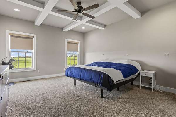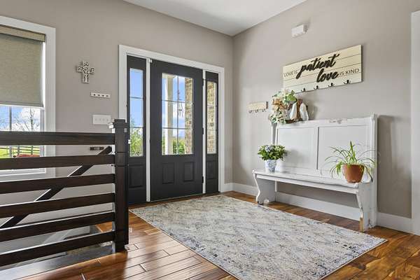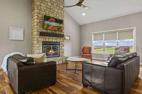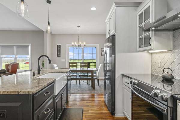 Nestled on just under 10 picturesque acres, this custom-built ranch style home, built in 2018, offers the perfect blend of privacy, space and convenience-located just 10 minutes from downtown. With 5 bedrooms and 5 bathrooms, this thoughtfully designed home provides plenty of room for everyone, including a private en suite bedroom over the garage-ideal for guests, home office or multi-generational living. Large primary en suite privately situated in rear of home, separate from other bedrooms. Large cozy living room with stone fireplace and outstanding views. Gourmet modern kitchen with large island. The lower level provides a partially finished full basement featuring an additional bedroom, full bath, and woodburning stove that is perfect for entertaining, extended stays or extra living space just waiting for your finishing touches. Tons of storage space including a separate emergency shelter room. Outside, find breathtaking views of rolling hills and farmland along with unforgettable sunrises and sunsets that make every day feel like a retreat. Covered front porch and back deck perfect for dining, entertaining or just enjoying the view. Separate from the attached 3-car garage, an additional workshop offers endless possibilities for hobbies, workspace, storage of boats or other recreational vehicles. Pond on property that can be filled if desired. If you've been searching for peaceful country living without sacrificing proximity to town, this one truly checks every box!