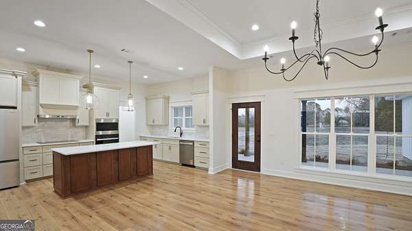 Welcome to 112 Foxwood Dr in Odum, GA - a stunning newly constructed home set on 1.6 acres, offering space, style, and thoughtful design throughout. This beautiful residence features 1,853 heated square feet and an impressive 2,854 square feet under roof, highlighted by a high roofline that delivers standout curb appeal. A paved driveway with additional parking adds both convenience and functionality from the moment you arrive. Inside, the home offers 3 bedrooms, 2 bathrooms, plus a dedicated office/bonus room, ideal for working from home or flexible living. The open-concept living areas showcase tray ceilings in both the living room and primary suite, along with large three-bay windows in the dining and living rooms that flood the home with natural light. The kitchen is designed to impress with granite countertops, built-in appliances, and a layout that flows effortlessly into the main living spaces-perfect for entertaining and everyday living. The primary suite is a true retreat, featuring a spa-style tile shower and an oversized walk-in closet the size of a small bedroom. Enjoy outdoor living on the large front and rear porches, ideal for relaxing and taking in the peaceful surroundings. The oversized garage with an 18' door allows two vehicles to comfortably fit, a rare and highly desirable feature. With modern construction, premium finishes, generous acreage, and practical upgrades throughout, this home offers the perfect blend of comfort, function, and style in a quiet yet convenient location. Seller is a licensed agent in the state of Georgia. Lic#416835