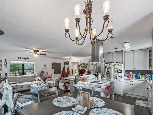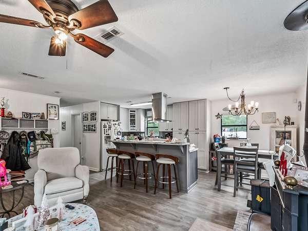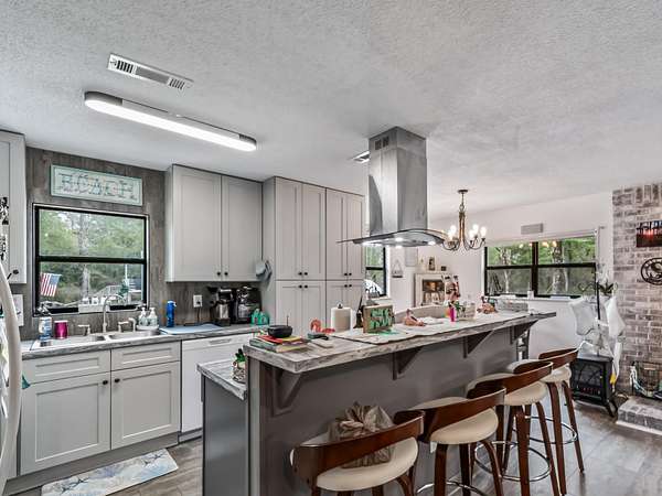 Enter this property thru long recorded easement that only one other neighbor utilizes to get to this great solidly built, all brick home on 6.15 acres. This unique home features 4 bedrooms, 2 baths, open living space with wood burning fireplace on brick hearth, eat-in bar, new kitchen cabinets with beautiful laminate countertops. Home has beautiful new luxury tile in great room and bathrooms with vinyl plank floors throughout all other rooms. Inside utility room/pantry leads to the large partially fenced backyard. There is an oversized two-car garage that could be used as a mancave or workshop. Other improvements: new air conditioner, crawl space vapor barrier, washing machine, fireplace vent, range hood, light fixtures, and hardware. Appx 2-3 acres in back are not cleared for ultimate privacy. Will need to give a 24-hour notice as this property is tenant occupied.