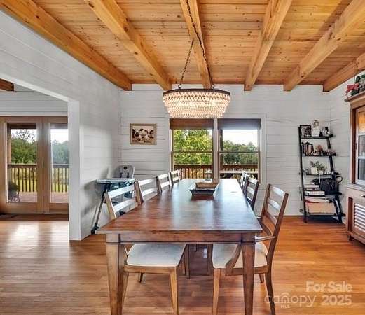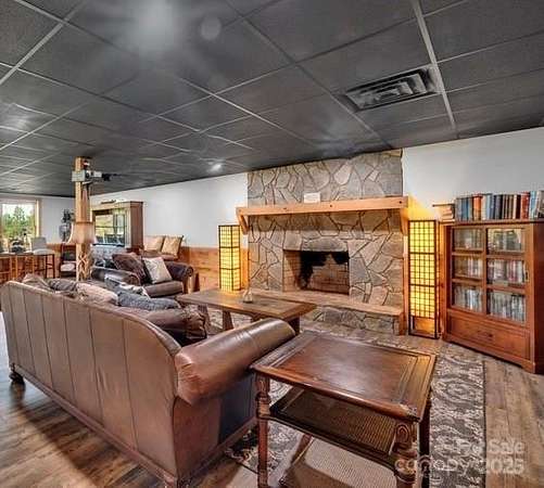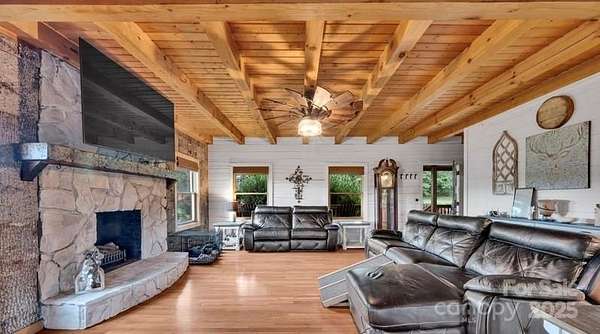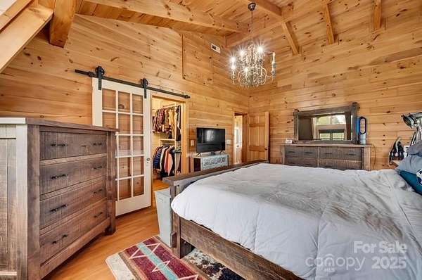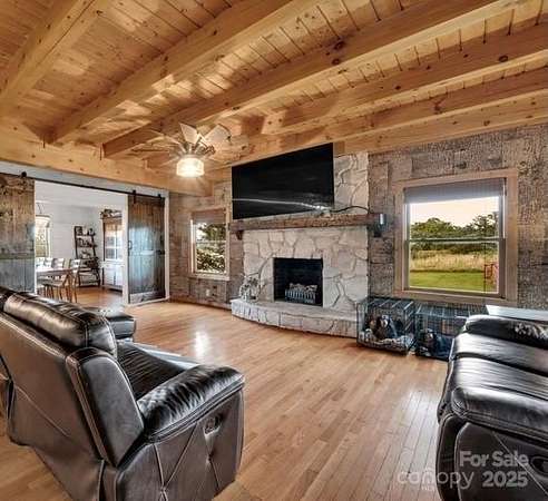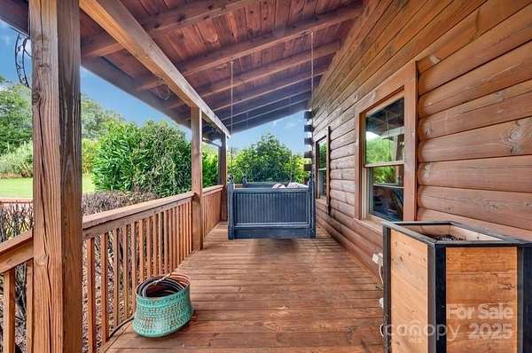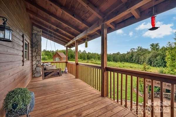 This country estate features a beautiful 3 story log cabin with 2 primary bedrooms, a full bar a theater area, an outdoor entertainment space, 3 stone fireplaces, a she-shed (20 x 20), two rocking-chair porches, a quonset hut (110 x 60), a beautiful updated kitchen with granite countertops, large pantry, and stainless appliances. The first floor primary bath has a custom travertine shower and travertine flooring. The quonset hut has a separate power meter and could be converted into a stable, a workshop, or an airplane hanger. Twelve acres provides many opporuties to create a personal paradise. The homes exterior logs were corn cob blasted (google this technique) and resealed in 2021.