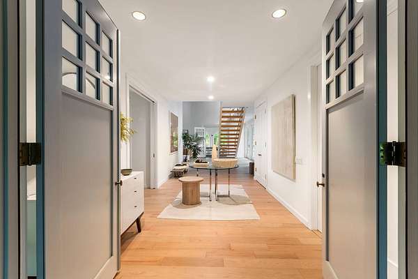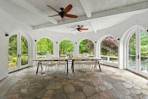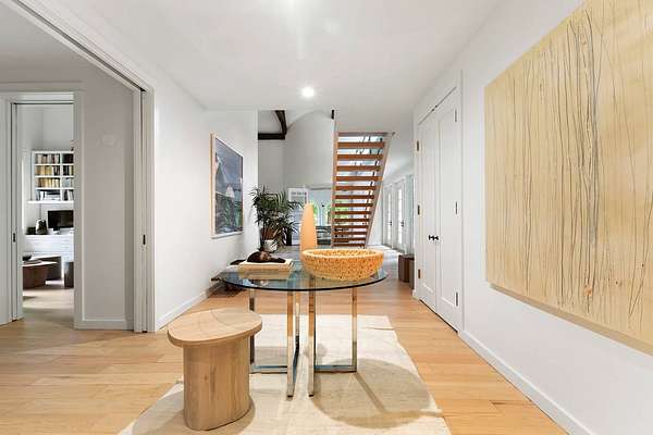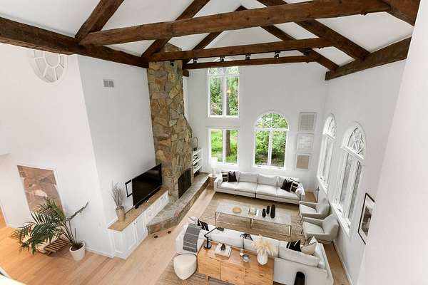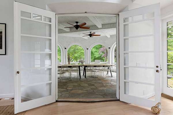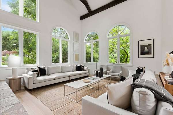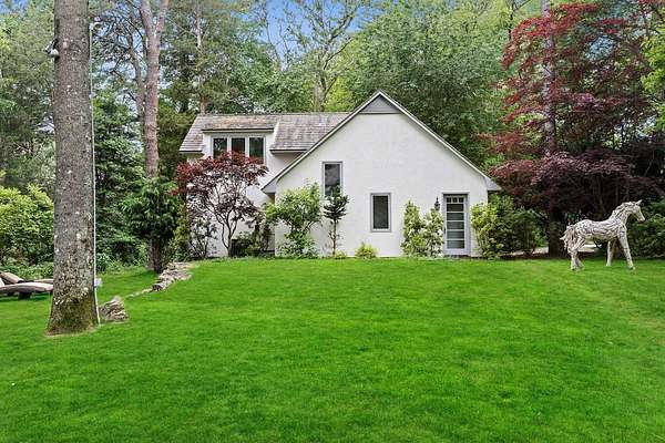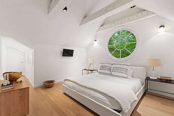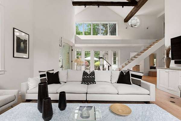 New to the market! Sited on 1.9 gorgeous acres on Georgica Pond, this expansive 6,200 square foot French Country Estate is a one of a kind offering that's not to be missed, featuring 7 bedrooms, 5.5 bathrooms, and generous living/entertaining space indoors and out. A perfect oasis for the creative visionary seeking an inspiring setting. Here you'll enjoy blissful grounds graced by tall trees, lush shrubbery and pristine landscaping, a freeform 70' long gunite swimming pool and beautiful stone patios for private outdoor pleasure. A large grassy play area is an ideal attraction, or lounge and converse by the pool. Interiors are bathed in light from generous arched and oversized windows as well as glass doors, while vaulted beamed ceilings, rich wood flooring, detailed woodwork and stucco accent walls lend warmth and elegance. Beyond the gracious, airy entry foyer rests a soaring two story living room centered by a striking floor-to-ceiling fieldstone fireplace for gathering around with family and guests. French doors open to the patio and pool area as well as a round dining/sitting pavilion enveloped by glass, framing picturesque views. Other highlights include a junior guest suite on the main level, and divine primary suite tucked in a serene second floor "tower". This retreat, with a private terrace, overlooks Georgica Pond and the pool, and features a spa-like bath with dual sinks, marble floor and glass shower. Four additional bedrooms, two full baths, and laundry complete the guest wing. As alluring is the separate loft studio with bath and heated storage above the three car garage! Take your paddle board or kayak out on the pond via an enchanting private pebble pathway, daydream on the bench gazing out at nature's beauty, or enjoy all that the village has to offer including ocean beaches and local amenities right nearby. This south of the highway stunner is a must see!