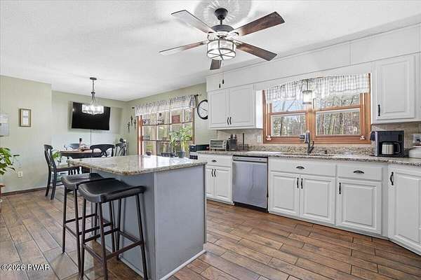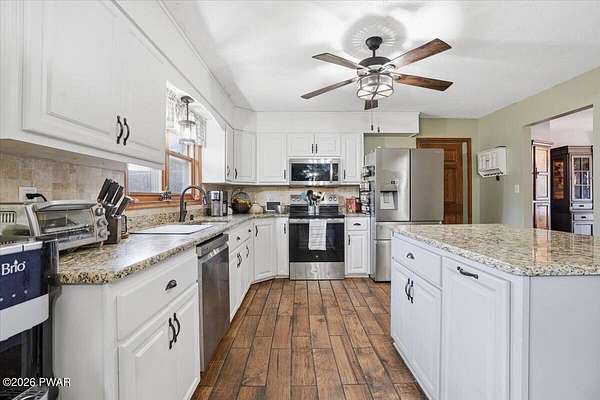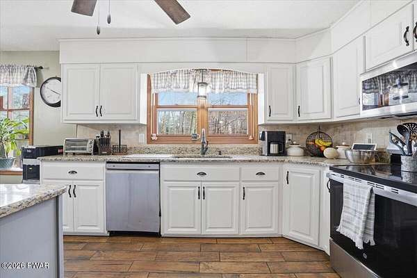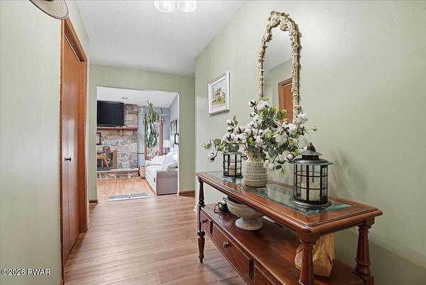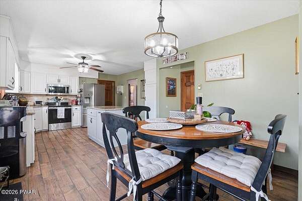 Welcome to this beautiful 3-bedroom, 2-bath home in Cresco, PA, offering the perfect blend of comfort, space, and country charm on 1.65 acres!Step inside to find gorgeous hardwood flooring throughout, creating a warm yet modern feel. The spacious living area features a cozy wood-burning fireplace--perfect for relaxing nights at home.The heart of the home is the eat-in kitchen, complete with beautiful granite countertops, ample cabinetry, and space for gathering to cook with loved ones. A formal dining room adds the perfect touch for entertaining family and friends.Enjoy the outdoors with your own private retreat--featuring an outdoor deck for relaxing after a long day, spacious yard, shed and even a chicken coop for those looking to embrace a bit of homesteading lifestyle.A 2-car garage provides convenience and storage, while the full unfinished basement offers endless possibilities for future expansion, a home gym, or additional living space.