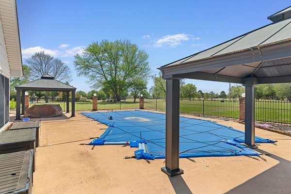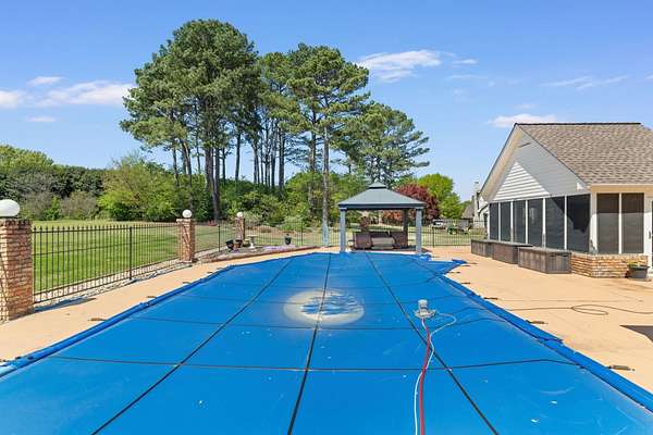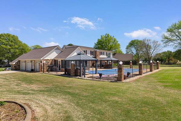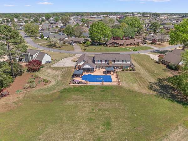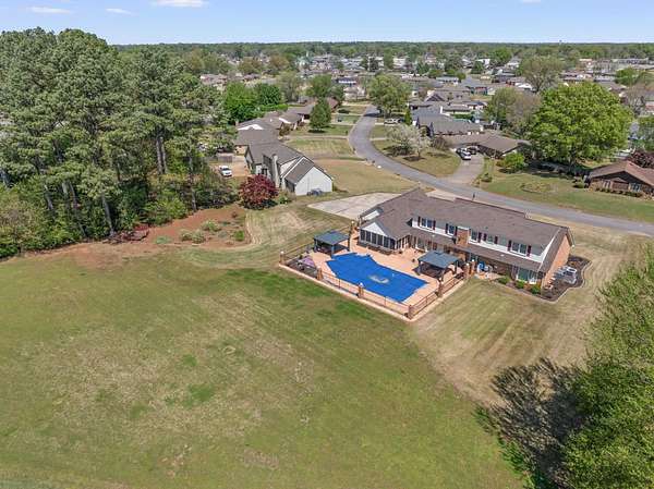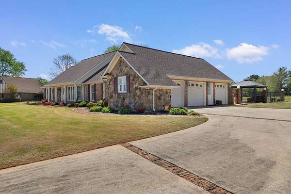 Stunning 4-bedroom, 3.5-bath home located on the desirable Cypress Lakes Golf Course in Muscle Shoals. This beautifully updated home offers spacious rooms and exceptional amenities throughout. The fully renovated kitchen features two oversized granite islands, custom cabinetry, high-end stainless steel appliances, and abundant workspace perfect for entertaining. Gorgeous hardwood flooring and an impressive staircase add to the home’s charm and character. The primary suite includes a completely renovated bath with a luxurious Carrara marble shower and Brazilian marble countertops. Situated on a large golf course lot, the outdoor space boasts an in-ground saltwater pool with a new liner and pump installed in 2025 ideal for relaxing or hosting guests. Additional upgrades include new plumbing in 2024 and a large storm/safe room located in the garage for added peace of mind. This home offers the perfect blend of elegance, comfort, and functionality in a prime location. 1.70 Acres to Enjoy.