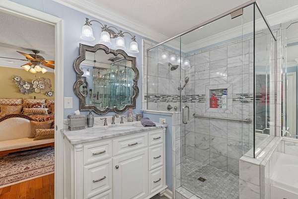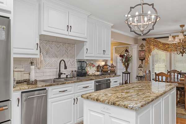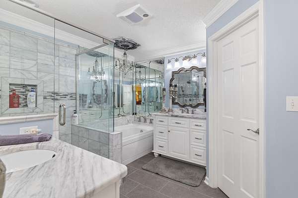 - Breakfast Bar, Chandelier, Counters-Granite, Counters-Marble, Double Closets, Double Vanity, Entrance Foyer, Glamour Bath, High Speed Internet, Kitchen Island, Pantry (interiorfeatures), Primary Bedroom Main, Storage (interior), Tile Shower, Walk-In Closet(s)