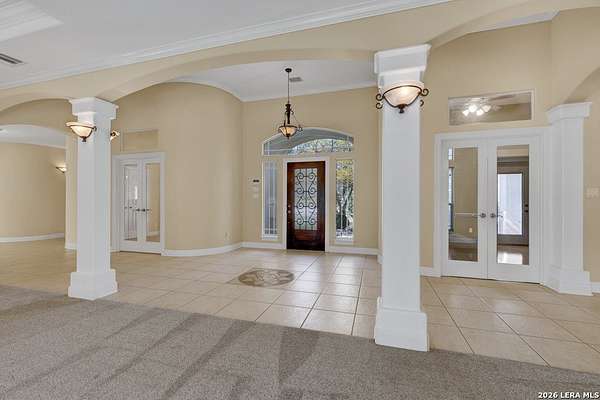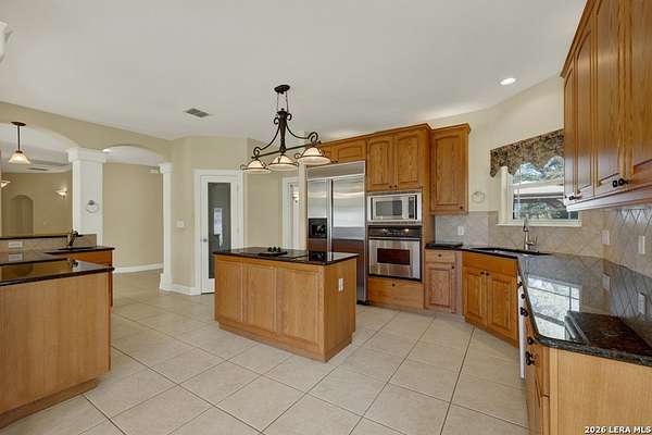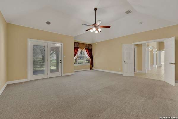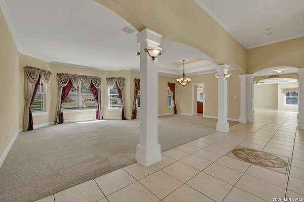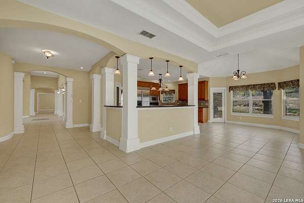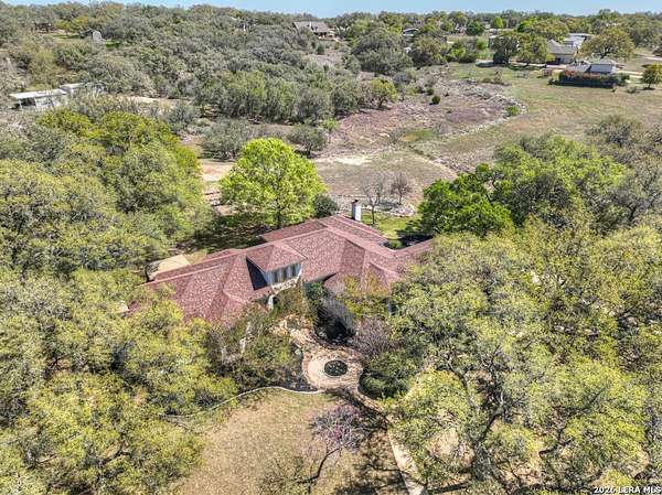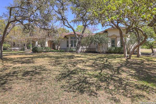 Welcome to 187 Hidden Pointe in the highly sought-after River Chase community-where space, privacy, and Hill Country beauty come together on 4 acres dotted with over 100 mature oak trees. This expansive one-story home offers 3,230 square feet of thoughtfully designed living space, featuring 3 bedrooms, 3.5 baths, two spacious living areas, and two dining areas-perfect for both everyday living and entertaining. A dedicated media room and dual offices provide incredible flexibility for work, play, and relaxation. Natural light pours throughout the home, creating a warm and inviting atmosphere in every room. The oversized 3-car garage, circular drive, and additional driveway to the garage offer abundant parking for guests, boats, or recreational vehicles. Enjoy the peace and privacy of acreage living while still being part of a vibrant community with exceptional amenities, including a pool, clubhouse, and exclusive Guadalupe River park access. Located within award-winning schools, this property truly has it all. Experience the perfect blend of comfort, function, and natural beauty-this is Texas Hill Country living at its finest.