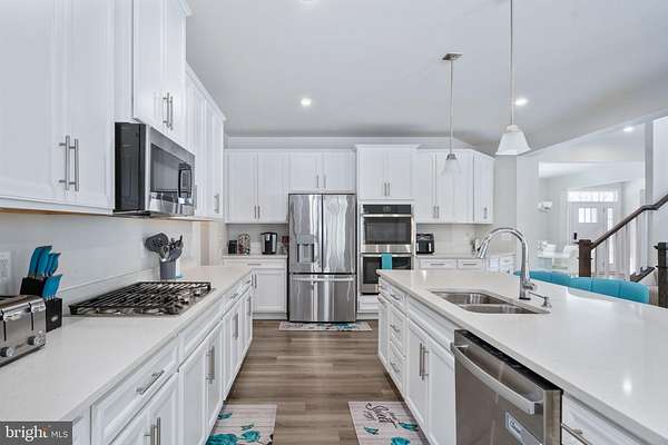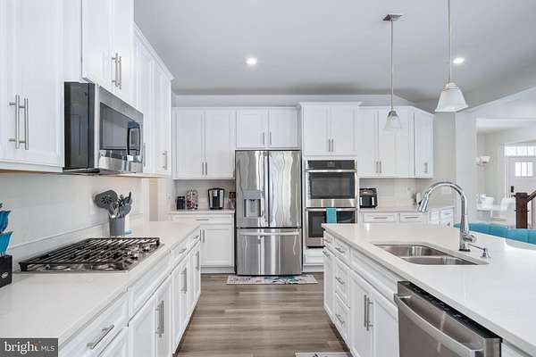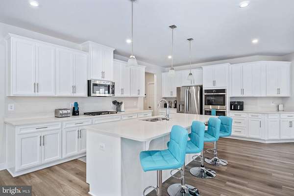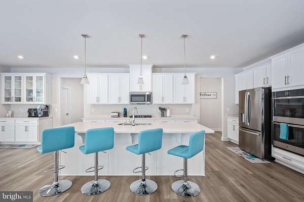 Built in 2024, this exceptional 5-bedroom, 5-bath home offers over 4,200 square feet of beautifully designed living space, perfectly combining style, comfort, and functionality. Nestled on a private, wooded 1.81-acre lot, you'll enjoy peaceful surroundings with plenty of room to relax and unwind. The open-concept floor plan is ideal for both everyday living and entertaining. The gourmet kitchen features stainless steel appliances, double ovens, a spacious island, and a large butler's pantry-providing both convenience and ample storage. The adjoining living room is warm and inviting, centered around a stunning stone fireplace. A main-level bedroom with a full bath offers flexibility for guests, multi-generational living, or a private home office. Upstairs, generously sized bedrooms and well-appointed bathrooms provide comfortable retreats for everyone, along with abundant closet space throughout. Designed with entertaining in mind, the home includes a wet/dry bar and a dedicated in-home theater-perfect for movie nights and gatherings. Step outside to enjoy the natural beauty of the wooded lot, offering privacy and a low-maintenance outdoor lifestyle. Additional features include luxury vinyl plank and ceramic tile flooring, a 3-car garage (side-entry plus front-entry), owned solar panels for energy efficiency, and a modern security system for added peace of mind. Move-in ready and thoughtfully upgraded, this home offers the perfect blend of luxury, space, and privacy-without the wait of new construction. Schedule your showing today.