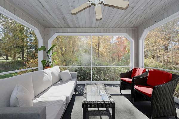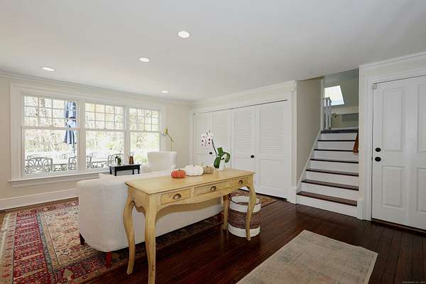Quintessential New England colonial set back on 3.21 picturesque acres on one of Wilton's most sought after cul de sacs, Middlebrook Farm Road. This impeccable home is warm & inviting with graceful blue stone walkway to the main front entry; 2nd informal covered porch entry; charming screened porch; expansive deck overlooking the private backyard with mature trees; plus additional large open meadow/field, perfect for sports or lawn games. This special home is drenched in natural light & offers clean lines and open flow from the sparkling white kitchen offering stainless steel appliances & bar seating to the adjoining family room with walls of windows to both the back deck & front porch. There are just a few steps up to the sunny bonus room, newly remodeled, with vaulted ceiling & skylights, perfect as a playroom or studio. The pristine main level also offers gleaming hardwood floors, custom millwork including wainscot & crown molding, plus 3 fireplaces - in the living room, dining room, & private library with floor to ceiling built-in bookshelves. The second level offers the cheery landing with more built-in bookshelves; expansive primary suite with private bath & multiple closets; 3 additional generous bedrooms, all with hardwood floors & shared hall bath; plus walk-up attic for abundant storage. Top location, just steps to schools, plus convenient to commuting routes, train station, charming Wilton Center for shops/restaurants, & only 52 miles to Midtown. Truly exceptional!