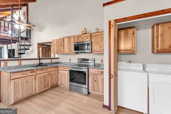 NE GA GETAWAY: Find yourself in the peace and privacy of your permanent vacation home, nicely nestled in the gorgeous Blue Ridge Foothills. Just 7 min to The Orchard Golf and Country Club, or the Panther Creek Falls recreation area; only 18 min to either downtown Clarkesville, or picturesque Minnehaha Falls; less than 30 min to charming Clayton, lake Rabun, Angel Creek Falls, and Oakey off-road trials near Burton Dam; less than 40 minutes to the fun-filled recreation town of Helen GA, and a mere 10 minutes to the popular outdoor treasure, Tallulah Falls State Park. Enjoy golfing, whitewater paddling, swimming, boating, river-tubing, hiking, mountain biking, rock climbing, hunting, fishing, picnicking, or just exploring the many magical waterfalls glistening with pristine mountain beauty. Plus, there are dozens of great food and winery destinations nearby! This stylish and well-kept 2+ bedroom 1.5 bath single-level home features: vaulted ceilings beautiful beams and tongue and groove ceilings, hardwood floors, a new spiral staircase for the lovely loft, a renovated bathroom, a breakfast bar, newer kitchen cabinets, nice granite countertops, stainless steel appliances, washer and dryer, a 3-year-old HVAC, a metal roof, newer Anderson windows, and a new screened in sitting porch with a rear ramp entrance, all sitting pretty on 2.1 level, wooded acres. This low maintenance, move-in ready property offers great options: either a short-term or long-term rental, a second home, or your own personal piece of heaven. Take a look at this great opportunity today! VRBO!!!
