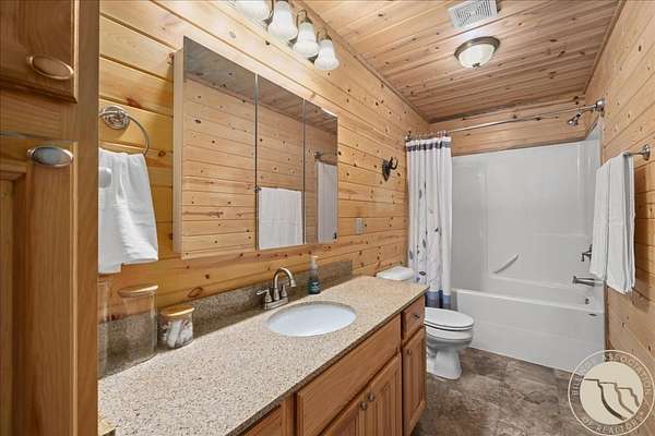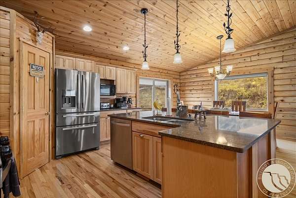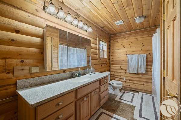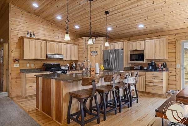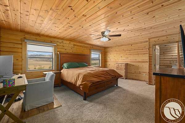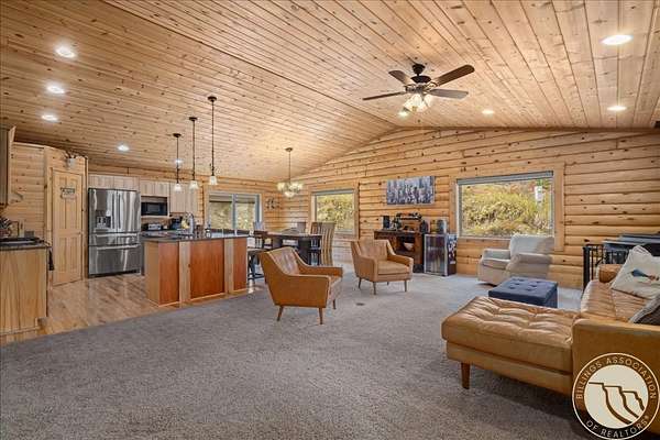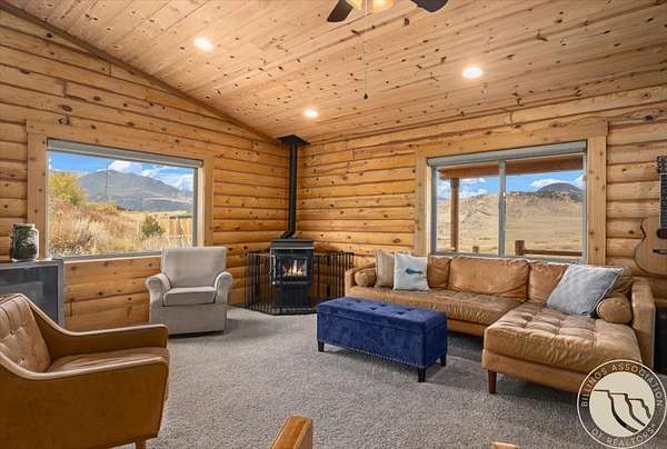 Here's something you don't see every day - a 3.25% assumable VA loan on a custom Paramount Log Home with Beartooth Mountain views and 10 private acres. The home itself delivers on every front: pine interior, blue-pine trim, vaulted ceilings, open-concept kitchen and great room, quartz counters, hickory cabinets, and a main-level primary suite with jetted tub. Four bedrooms total, a rec room, bonus space, and an oversized heated garage round it out. Recent updates include fresh exterior stain, interior chinking, and fiber internet. Dual 2,000-gallon cisterns and a 2024 septic pump mean the infrastructure is solid. And then there's the private 7-acre Stillwater River park - for fishing, rafting, and everything Montana summers are made of.