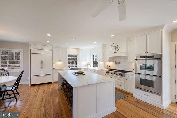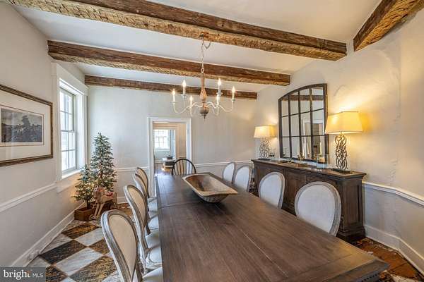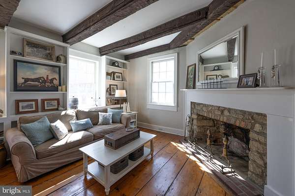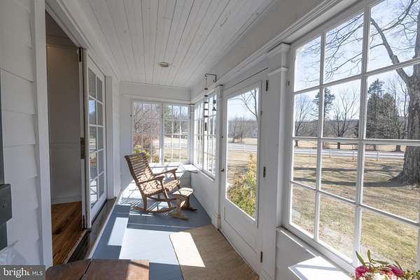 Welcome to your own private retreat, set on 5.8 peaceful acres surrounded by nature and endless possibilities. This 4-bedroom, 3.5-bath home blends rustic elegance with timeless character, featuring heart pine floors, exposed beams, soaring 10-foot ceilings, five fireplaces, and custom built-ins that create a warm and inviting atmosphere. The gourmet kitchen is designed for gathering and entertaining, complete with a Wolf 6-burner cooktop, Sub-Zero refrigerator, double Dacor ovens, and beautiful marble countertops, perfect for everything from casual mornings to memorable dinners with friends and family. Enjoy sunny spring mornings in the enclosed porch or relax in the mahogany-lined three-season room overlooking serene wooded views. The expansive property offers space to garden, explore, or simply unwind in the peaceful surroundings. Additional features include solar panels for energy efficiency with no electric bills, a carriage house currently used for garage and storage space, a charming stone outbuilding, and a detached one-bedroom apartment with separate septic and HVAC, ideal for guests, rental income, or a private caretaker's suite. An additional 1,250 sq ft flexible-use space offers endless opportunities for a studio, workshop, or home office. A rare opportunity to enjoy privacy, sustainable living, and room to create the lifestyle you've been dreaming of this spring.
