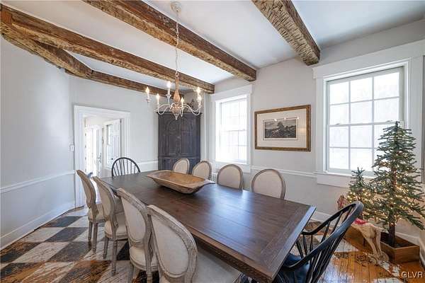 Just Reduced - 'Tis the season to make your dream home a reality! Step into the ultimate hobbyist's haven, set on 5.8 private, peaceful acres - ideal for celebrating cozy gatherings, evenings by the fire, and creating memories all season long. This 4BR, 3.5BA home blends rustic elegance with heart pine floors, exposed beams, five fireplaces, and custom built-ins that feel warm and welcoming this winter. The gourmet kitchen is designed for entertaining, featuring a Wolf 6-burner cooktop, Sub-Zero refrigerator, double Dacor ovens, and marble countertops - perfect for holiday feasts and farm-to-table cooking. Enjoy quiet mornings in the enclosed porch or unwind in the mahogany-lined 3-season room overlooking serene, wooded views. Outside, the property offers a carriage house (currently used as a garage and storage), a charming stone outbuilding, and a detached 1-bedroom apartment with separate septic and HVAC-ideal for holiday guests, rental income, or a private caretaker's suite. An additional 1250 sq ft flexible-use space provides endless possibilities for a studio, workshop, or home office. A rare opportunity to enjoy sustainable living, privacy, and space - now reduced and ready to welcome you home this winter.