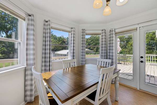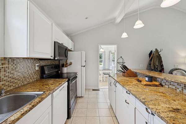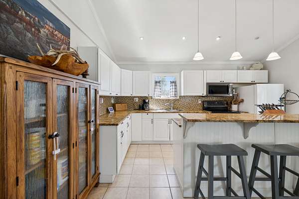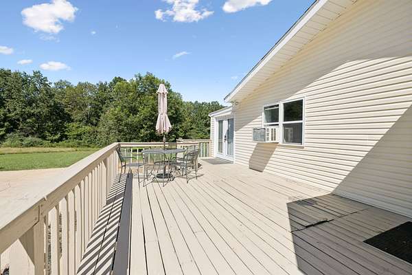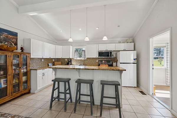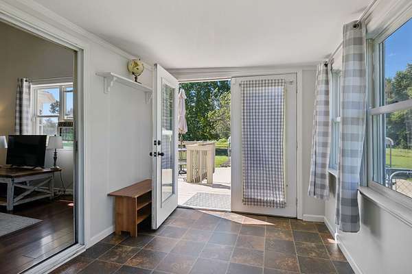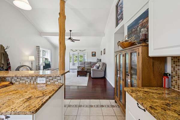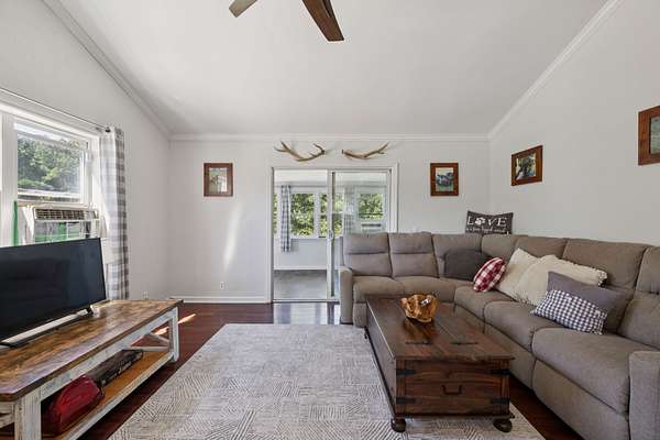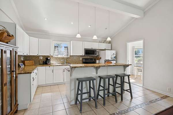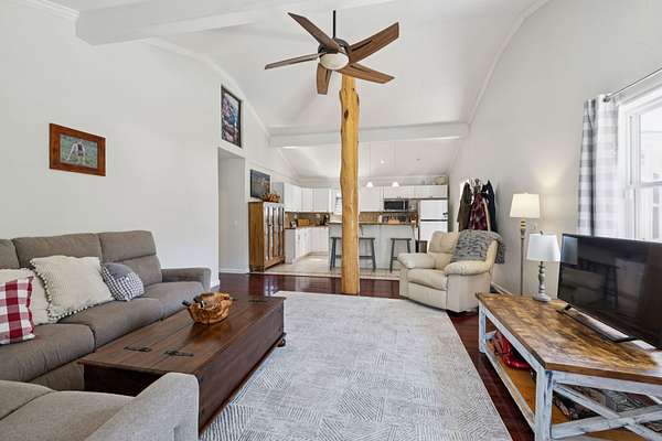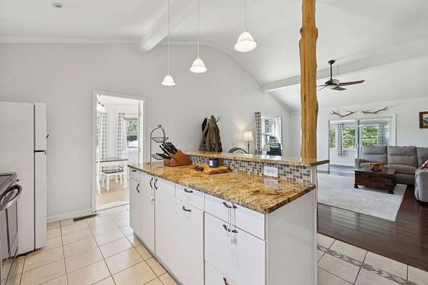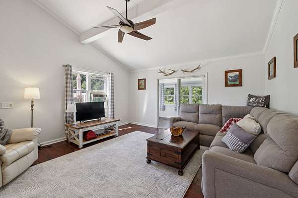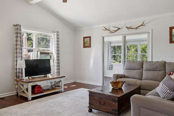 The charming home features 3 bedrooms and 2 bathrooms, designed with comfort and functionality in mind. Step inside to find a spacious living room with vaulted ceilings, filled with natural light and open to the kitchen. The kitchen is a true centerpiece, boasting a large island, and ample counter space--perfect for family meals or entertaining friends. A cozy sunroom invites you to take in the surrounding views year-round, while the expansive front deck is ideal for sitting back with a cup of coffee and soaking in the sounds of nature.