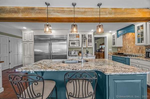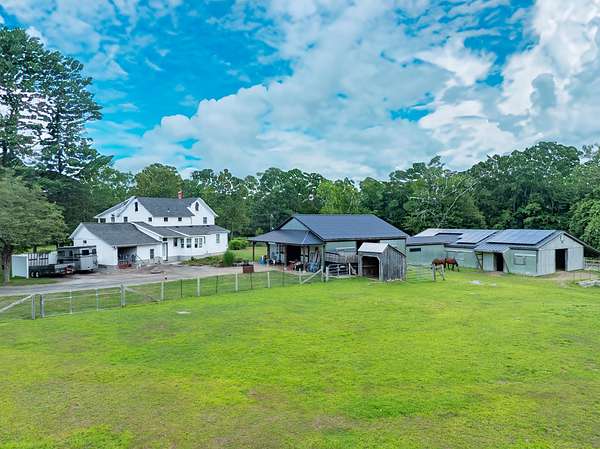 This fully renovated multi-level Colonial, originally built in the early 1900s, offers a rare opportunity to own a turn-key equestrian estate in one of East Haddam's most scenic and private settings. Blending historic charm with modern amenities, the home and grounds have been thoughtfully updated and meticulously maintained. The house is equipped with solar panels, central air, propane, dual oil tanks and a Briggs Stratton Generator. The residence features a high-end chef's kitchen equipped with stainless steel appliances, granite countertops, a center island, double wall oven and custom cabinetry. Hardwood and red slate flooring throughout the house. The spacious layout includes multiple living and entertaining areas all with custom plantation shutters. There are four generous bedrooms all with ensuite bathrooms. The first floor primary suite has a handicap accessible en-suite bathroom and propane stove. Don't miss the beautiful veranda off one of the second floor bedrooms or the clawfoot bath tub! For equestrian use, the property includes a large multi-section barn with six stalls, including a birthing stall, tack room, two turnouts, heated/ frost free water hydrants and a large storage area for hay and equipment. This large corner lot is professional landscaped and includes a lush greens fields, a pond, stone walls, three paddocks, a proper round pen and an outdoor riding arena is being constructed. The entire parcel is fenced and gated for safety and privacy.