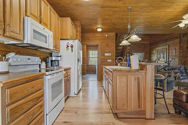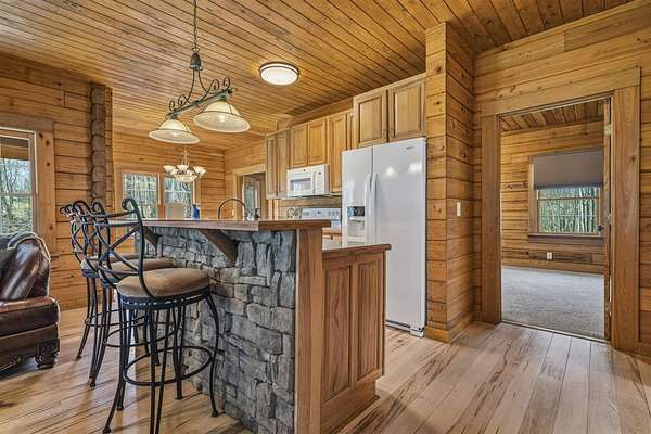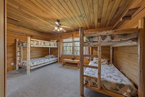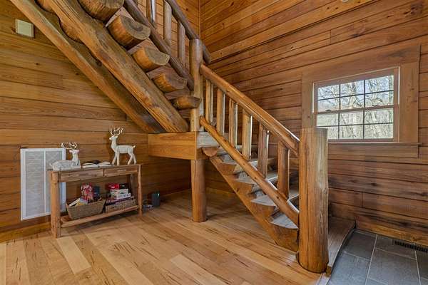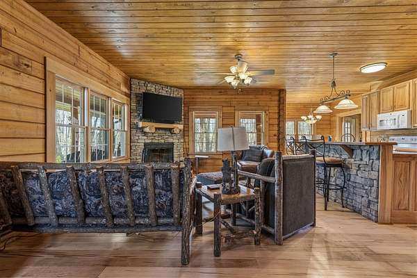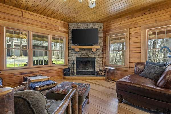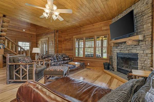 Perfect dual lifestyle of lake life and everyday living made easy! Enjoy a serene and peaceful home year around or seasonally to escape and unite with loved ones. This stunning cabin in Fountain Run sits on a 4.5-acre lot providing a combination of trees and flat useful land. Boasting 1800 sq ft, 3 bedrooms, 2 bathrooms, office space, income producing as part time AirBnB, lake access by trail or one mile to Browns Ford boat ramp. Roughly one-acre flat backyard and don't forget about the 30x40 detached garage with 9000 lb lift, all furniture to remain, new flooring, water heater, new HVAC, cabin treated and stained in 2024. Schedule your private showing today!