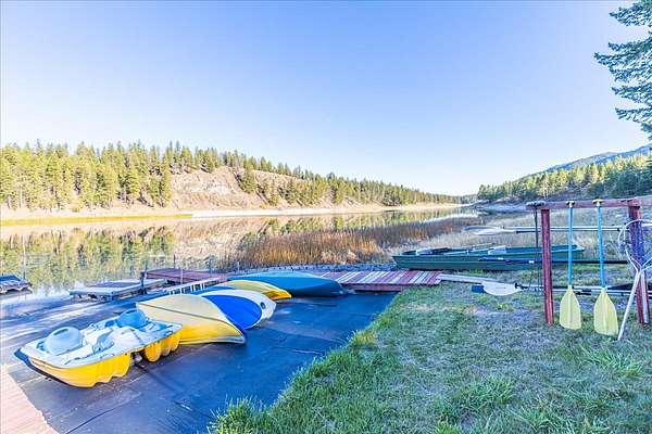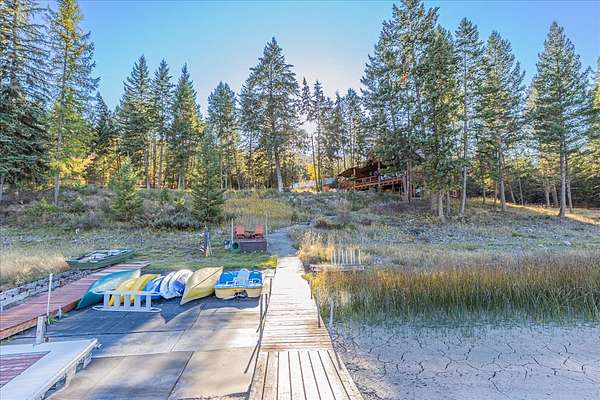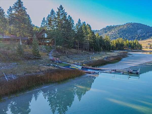 Discover your Montana dream with this stunning Cedar Lake House and Hobby Farm on the shores of Othorp Lake. Over 6 wooded and secluded acres of waterfront living. The home features vaulted ceilings with floor-to-ceiling windows that showcase tranquil lake and forest views. Step outside to grill on the covered deck or relax in the hot tub or by one of two firepits. For those who enjoy gardening and self-sufficiency, the property includes a greenhouse, a fenced garden area, barn with chicken coop, and an insulated and heated garage with shop, hobby room, and a climate-controlled storage area. Additional highlights include in-ground sprinklers, boat dock, and the inclusion of most furniture, tools, and watercraft, making this turn-key property ready for you to start living the lake lifestyle. This exceptional property blends natural beauty, privacy, and practical amenities-ideal as a full-time residence, weekend getaway, or hobby farm retreat.