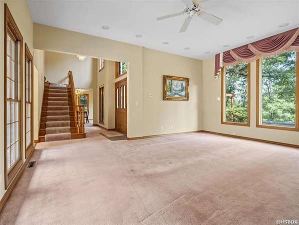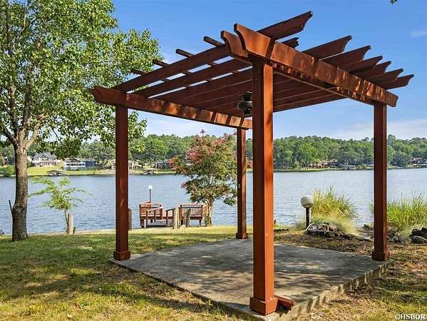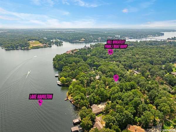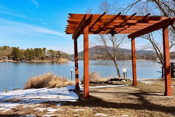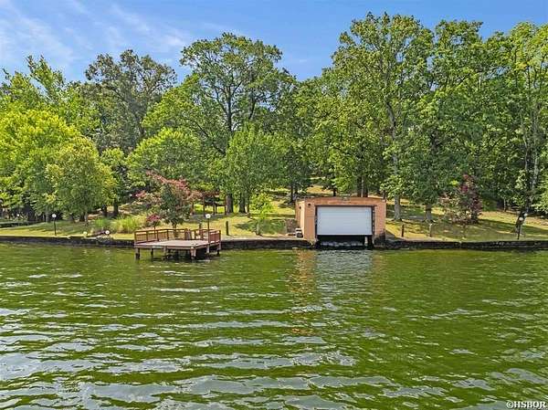 Offered is a rare lakefront estate on Lake Hamilton, set behind a gated entrance on approximately 3.83 private acres with over 500 feet of shoreline along the main channel. Opportunities with this level of acreage, frontage, and privacy are increasingly limited in Hot Springs. The two-story residence is designed for both comfortable daily living and entertaining. The main level features a spacious primary suite with ensuite bath, while three additional bedrooms and a full bath are located upstairs, providing ample space for guests. The floor plan offers both connection and separation, making it ideal for multi-generational living or extended stays. The main living areas are warm and inviting, highlighted by a fireplace and oriented to capture lake and mountain views. Expansive outdoor living spaces include a stone and brick patio at the water's edge--perfect for entertaining, relaxing, and enjoying sunsets over the lake. The property has been thoughtfully maintained and improved over decades, with mature landscaping, a tranquil waterfall feature, and a lake-fed irrigation system. A private boathouse with lift provides direct access to the main channel for convenient lake enjoyment. Additional features include a two-car attached garage and a three-car detached garage, offering generous space for vehicles, watercraft, and recreational storage. This property is well-suited as a primary residence, a retreat, or long-term investment. With substantial acreage, extensive main-channel frontage, and gated privacy in one of Lake Hamilton's most established areas, this offering presents a rare opportunity to own a premier lakefront estate.