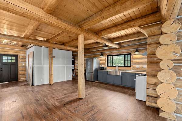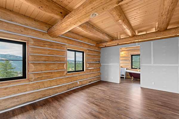 Escape to the peace & privacy of NE Washington-Beautiful log cabin retreat on 90 acres in Curlew, WA. A true outdoor lover's paradise that borders gov't land.The cozy log cabin features warm wood interiors, classic craftsmanship, and a welcoming atmosphere that makes it an ideal getaway, full-time residence, or vacation rental! Red Mountain is under 2 hours away! Ski, hike, hunt, fish..it is ALL HERE. Huge windows bring in natural light and showcase the surrounding landscape. Wildlife is abundant--deer, bighorn sheep, turkey, and other native species roam the property. Huge loft is plumbed for 3rd bath & more bedrooms. Large fenced garden for your fresh homegrown bounty! Building materials onsite & included with sale.