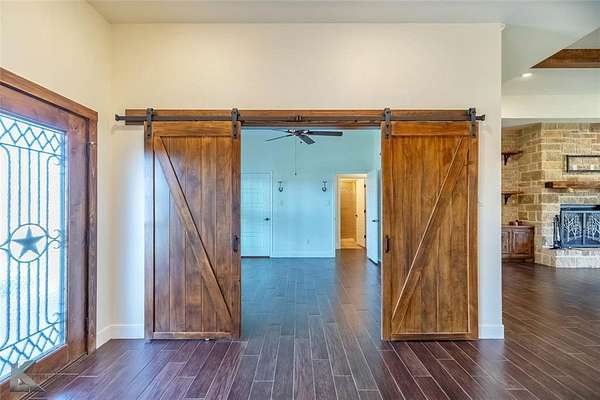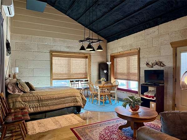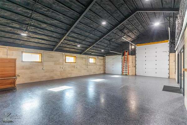 A standout feature of the property is the impressive 2,500 sq ft shop, thoughtfully designed for both function and enjoyment. It offers a kitchenette with icemaker and refrigerator, split units for comfort, and a full bathroom. Large glass doors lead to a separate garage-shop area, ideal for showcasing vehicles, hobbies, or projects.