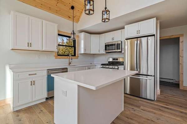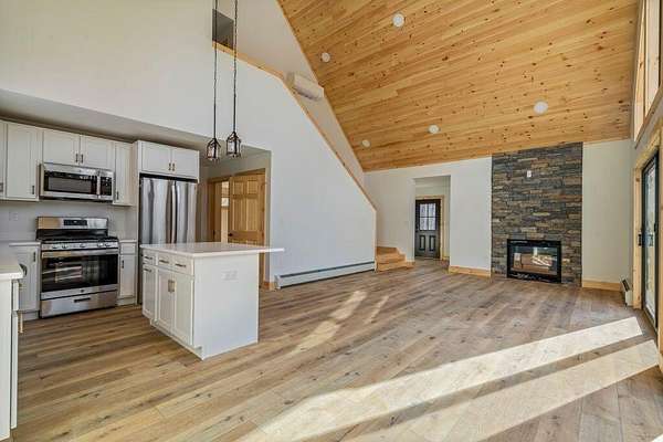 Brand-new chalet ready for immediate occupancy! Located in the desirable Winter Park neighborhood, this stunning 4-bedroom, 3.5-bath home offers a highly functional layout anchored by soaring cathedral ceilings in the great room, a stone fireplace, and distant mountain views. The main level features a primary bedroom with a full bathroom, along with a spacious kitchen and dining area, a dedicated laundry room, and a mudroom ideal for year-round living or rental use. The second floor includes two additional bedrooms and a full bath. Every above-grade living space is equipped with efficient mini-splits for cooling. The finished lower level expands the living area with an additional bedroom, a full bathroom, and a comfortable living room. An impressive bonus room in the rear is perfect for a home theater, game room, or additional recreation space. Whether you're seeking a high-performing rental or a year-round mountain retreat, this property offers exceptional versatility. Just 5 minutes to downtown Bethel and only 15 minutes to Sunday River Ski Resort, the location is ideal for skiing, hiking, and exploring the White Mountain National Forest, Crocker Pond, and endless outdoor recreation.