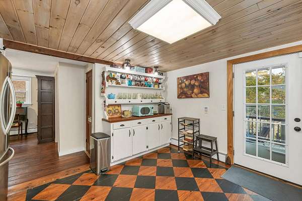 Set on 1.72 acres in New Hampton, this classic Colonial blends the charm of 1900 craftsmanship with thoughtful updates for today. Recent exterior improvements include new windows and vinyl siding completed in 2025, giving the home a refreshed look while keeping its character intact. Inside, you'll find wide-plank floors, inviting light, and flexible spaces that make it easy to settle in. The country kitchen includes a reverse osmosis water filter and opens to the back deck for outdoor dining or quiet mornings. A bonus room on the first floor with a walk-in closet offers options for a home office, hobby space, or guest area. The pellet stove adds a touch of warmth, and a half bath with laundry keeps things convenient. Upstairs, the bedrooms are spacious and bright, joined by a cozy landing that works nicely as a reading nook. The full bath carries classic style, and the attic offers a large unfinished space for storage or future ideas. Outside, pear trees, garden beds, a chicken coop, and a brand-new 10x16 shed add both charm and function. The walkout basement with workshop space opens toward the driveway. Conveniently located near I-93, Meredith, Newfound Lake, and local skiing--this home balances the feel of country living with easy access to everything the Lakes Region has to offer.