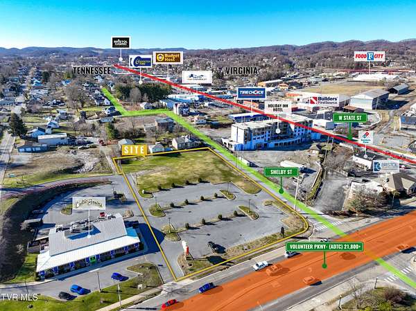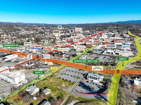 Location, Location, Location! Attention Developers!! Looking for a turn-key site in the heart of Bristol? Don't miss this one! Zoned B-2E, this versatile property offers 1.8 acres in a prime location and boasts incredible flexibility suitable for various business types ranging from retail and professional offices to medical or convenience store! Strategically positioned, this property already had parking and infrastructure in place while enjoying exceptional visibility from Volunteer Parkway with an impressive (ADTC) exceeding 21,800+ cars per day, ensuring maximum exposure for your business. Nestled in the heart of a rapidly growing city, this property is situated steps away from downtown Bristol, adjoining a new hotel being built, and just minutes away from HardRock Casino, The Pinnacle, The Hospital, and so much more! Whether you're looking to expand, re-locate, or invest and develop; don't miss the chance to establish your business in a thriving community! Priced to sell at $995k, call today to schedule your appointment! No restaurants allowed unless otherwise approved by the seller. Buyer must comply with the parking agreement with the adjacent business. All information contained herein is deemed reliable but gathered from tax records and homeowner and is subject to buyers verification.