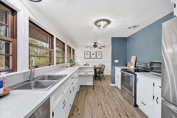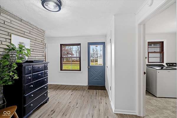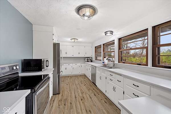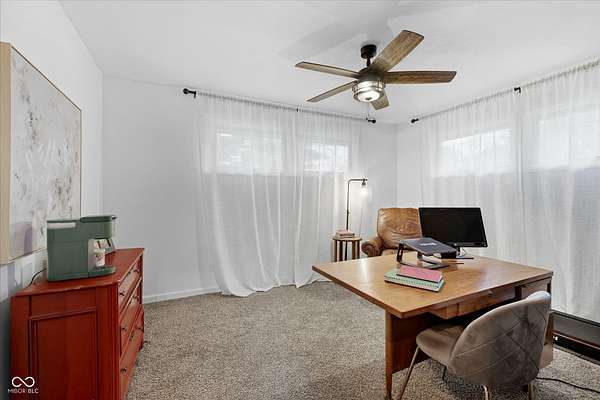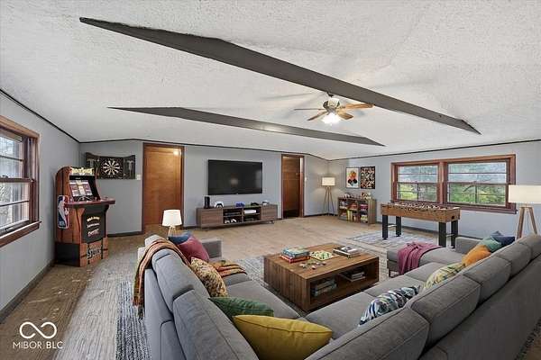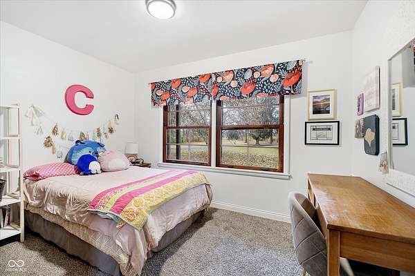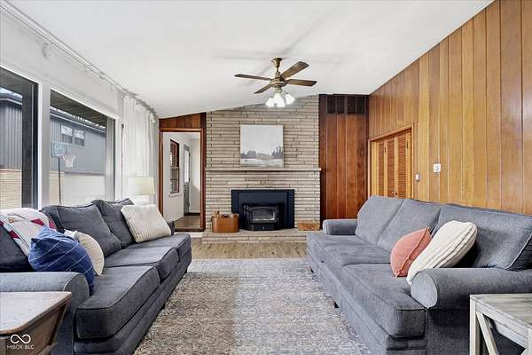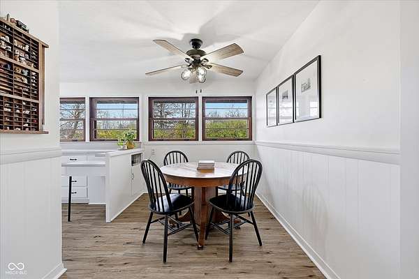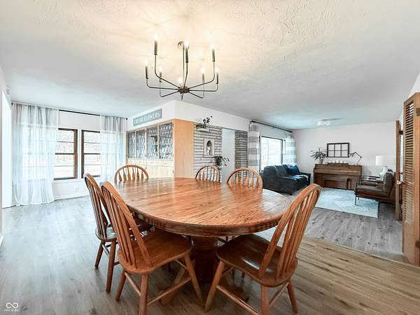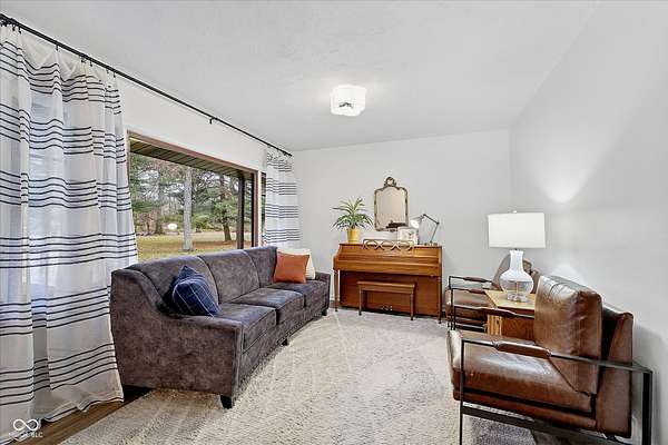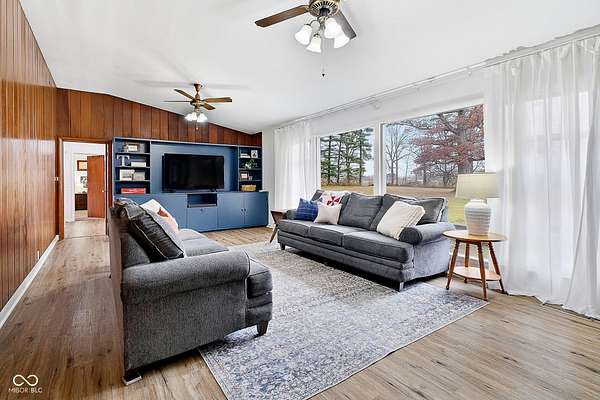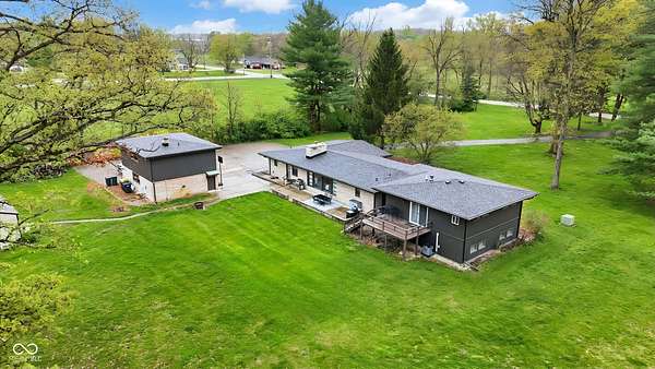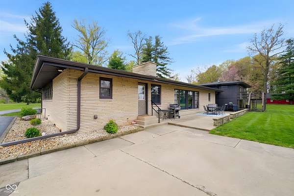 Mid-Century Retreat on 3 Acres | Tucked away and surrounded by mature trees, this exceptional 5-bed/3-full-bath home offers a rare blend of authentic mid-century design and modern updates. The entry showcases an exposed brick wall and decorative niche. The Living Room flows into the Dining Room, creating a space so perfect for entertaining... your guests may never leave. The Family Room boasts soaring lofted ceilings and rich wood-paneled walls. A wood-burning fireplace serves as a natural focal point. The spacious Kitchen works harder than your morning coffee. It features stainless-steel appliances, light countertops, crisp white cabinetry, and vinyl plank flooring. An impressive bank of windows floods the room with natural light... it might just turn you into a morning person. The primary Bedroom provides a quiet escape with neutral carpeting and double closets, and it opens to a wood deck. The primary en suite features a double vanity, a shower stall, and beautiful flooring. Three additional Bedrooms feature neutral carpets and ample closet space; they share a full bath with a double vanity. A fifth Bedroom is currently used as a home office, providing a quiet space for remote work. The Lower Level offers a versatile room that can function as a fitness center or playroom. For convenience, the main floor features a third full bathroom that also serves as a laundry room. The detached 2-car garage includes an upper-level carriage house. With its beamed ceiling, this area is the perfect canvas for a private studio, game room, or a place to park your college-aged kid who isn't quite ready for campus life. Extensive upgrades provide peace of mind: a new roof, septic line, chimney lining, updated plumbing, foundation improvements, lined crawl space, dual battery-backed sump pumps, and basement/crawl space dehumidifiers. See the Updates supplement for details. Make this your own slice of mid-century modern. Noisy neighbors and cookie-cutter designs not included.